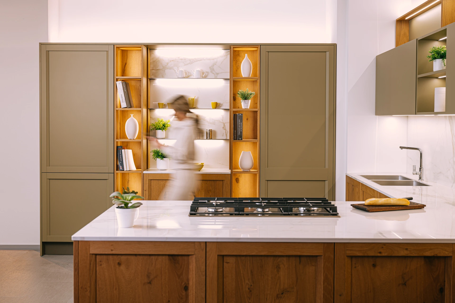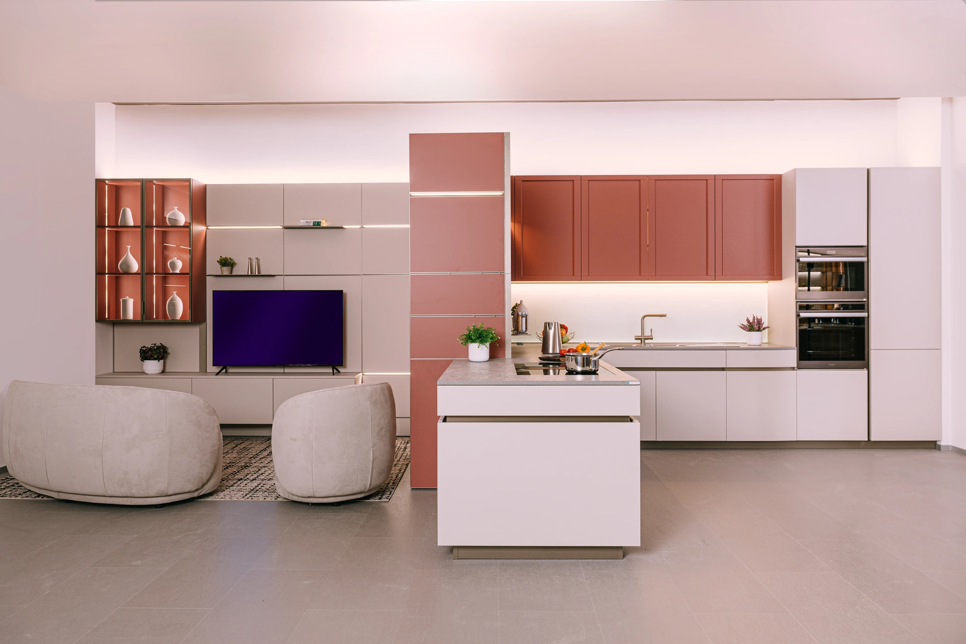 Come visit our showroom and experience the future of kitchen and living spaces firsthand. See how our new models blur the lines between cooking and living areas. Witness how we prioritise functionality without sacrificing aesthetics, creating visually connected environments that foster sociability in every space.