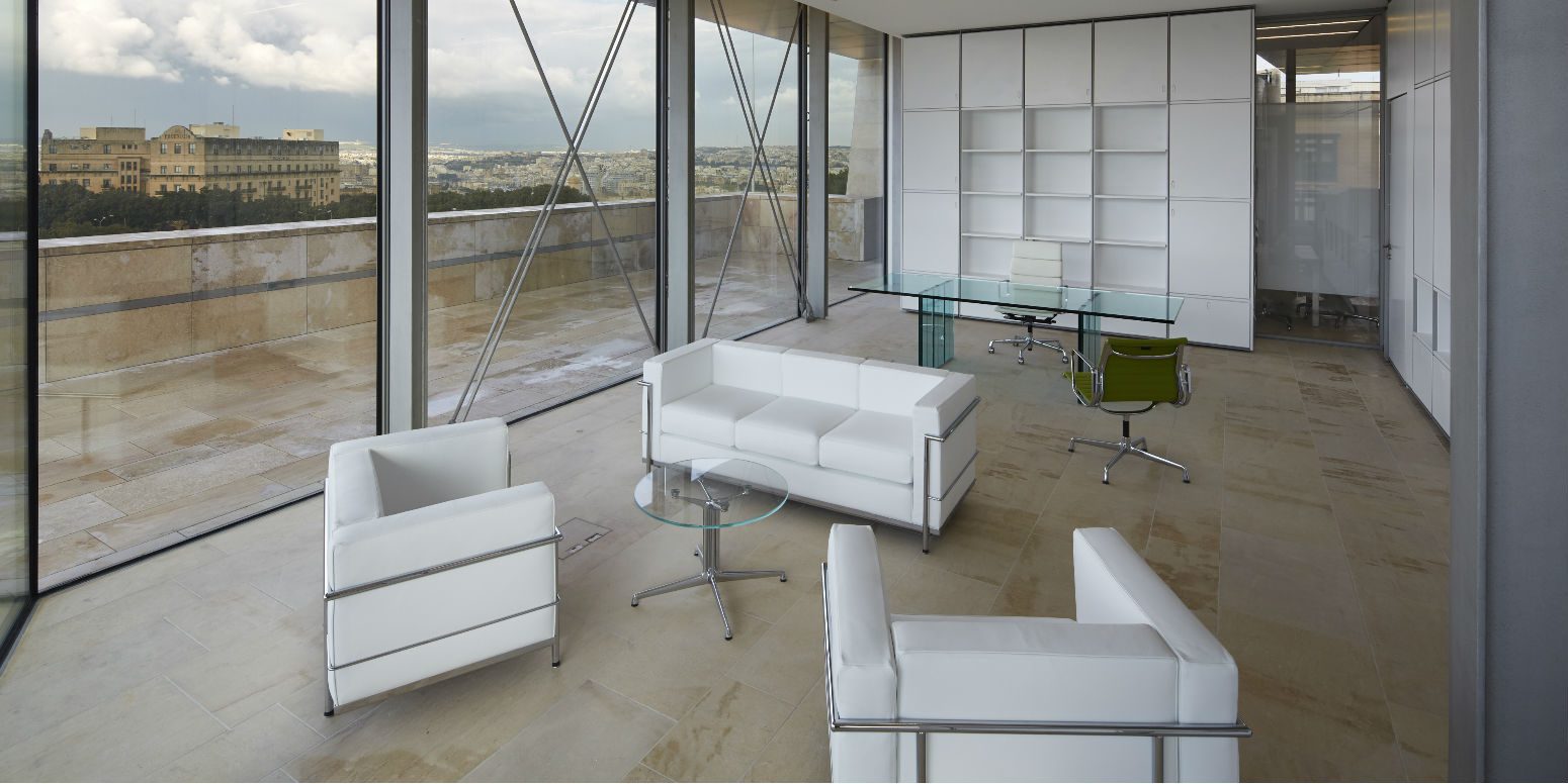 Fino Projects has enhanced the beauty of the Parliament House by furnishing its interiors in a vibrant color scheme. A powerful green dominates the inside of the Parliament and contrasts beautifully with the Gozitan limestone that covers the building. Fino was responsible with providing all interior partitions, ceilings in both gypsum and metal structure, internal doors and seating. This project presented not only challenges but a great accomplishment for the company. With 50 individual offices, 21 conference rooms and 800 sq m. RP glazed partition walls the Parliament House is an imposing landmark and a reference point to the Maltese people.