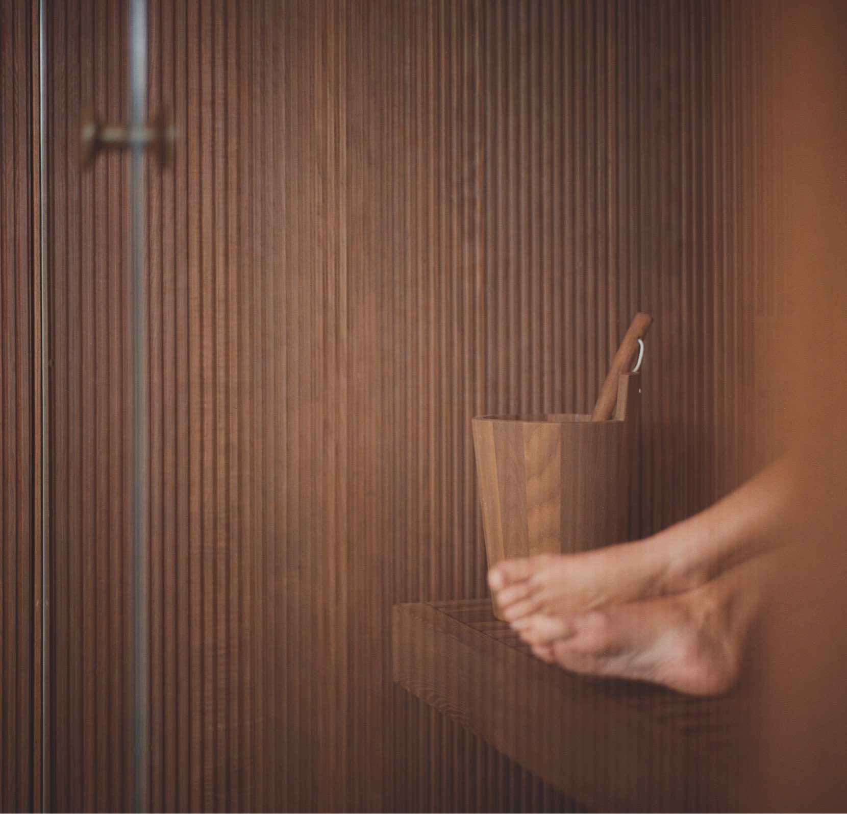 This sauna, with its unique design, makes a bold, elegant statement in any room. The BodyLove sauna heater is covered in glazed ceramic in unique colour combinations, a luxury material that enhances the soft beauty of the wood. The source of heat, the element of prime importance in the Finnish sauna tradition, has made a comeback with a new aesthetic that once again casts it in a starring role. The walls can be supplied in two different types of wood: natural hemlock and heat-treated solid wood, with mirror-finish surfaces on request. BodyLove includes exterior panelling highlighting the home dimension of the system, designed to be part of the furniture. Just like all Effe products, BodyLove offers countless personalisation options as regards the materials chosen and their combinations, to create a truly made-to-measure spa area.