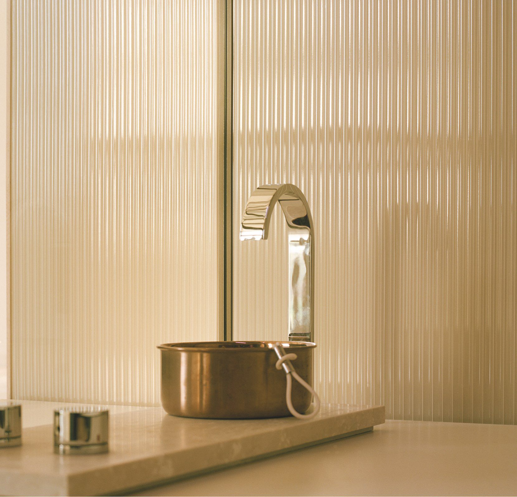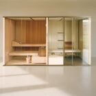 Personalise your private or public spa with BodyLove, a modular system that combines a sauna, Turkish bath and shower. The materials used in the Hammam are of outstanding quality: Champagne grès porcelain or fluted glass, white Corian® benches and teak accessories.