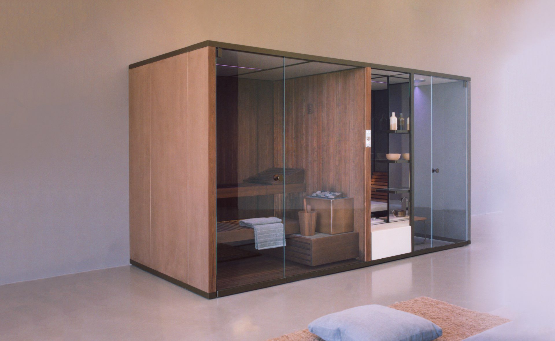 Functional, stylish, luxurious: Rodolfo Dordoni and Michele Angelini have created a project that engages all the senses. The modular system combines a sauna, Turkish bath and shower. A real personal spa designed for versatility and style.