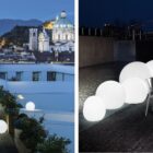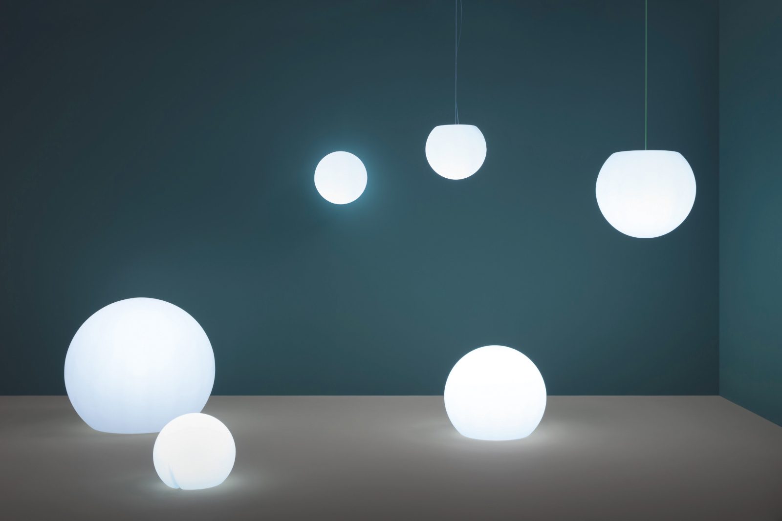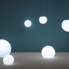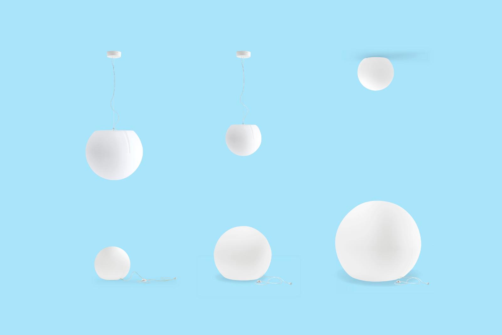 Happy Apple is a multipurpose and versatile collection of lamps. Floor lamp with lighting body Ø 1200mm made-up of rotational moulded polyethylene. To facilitate the handling it is provided with a handle at the base. Cable, cap and handle in green colour.