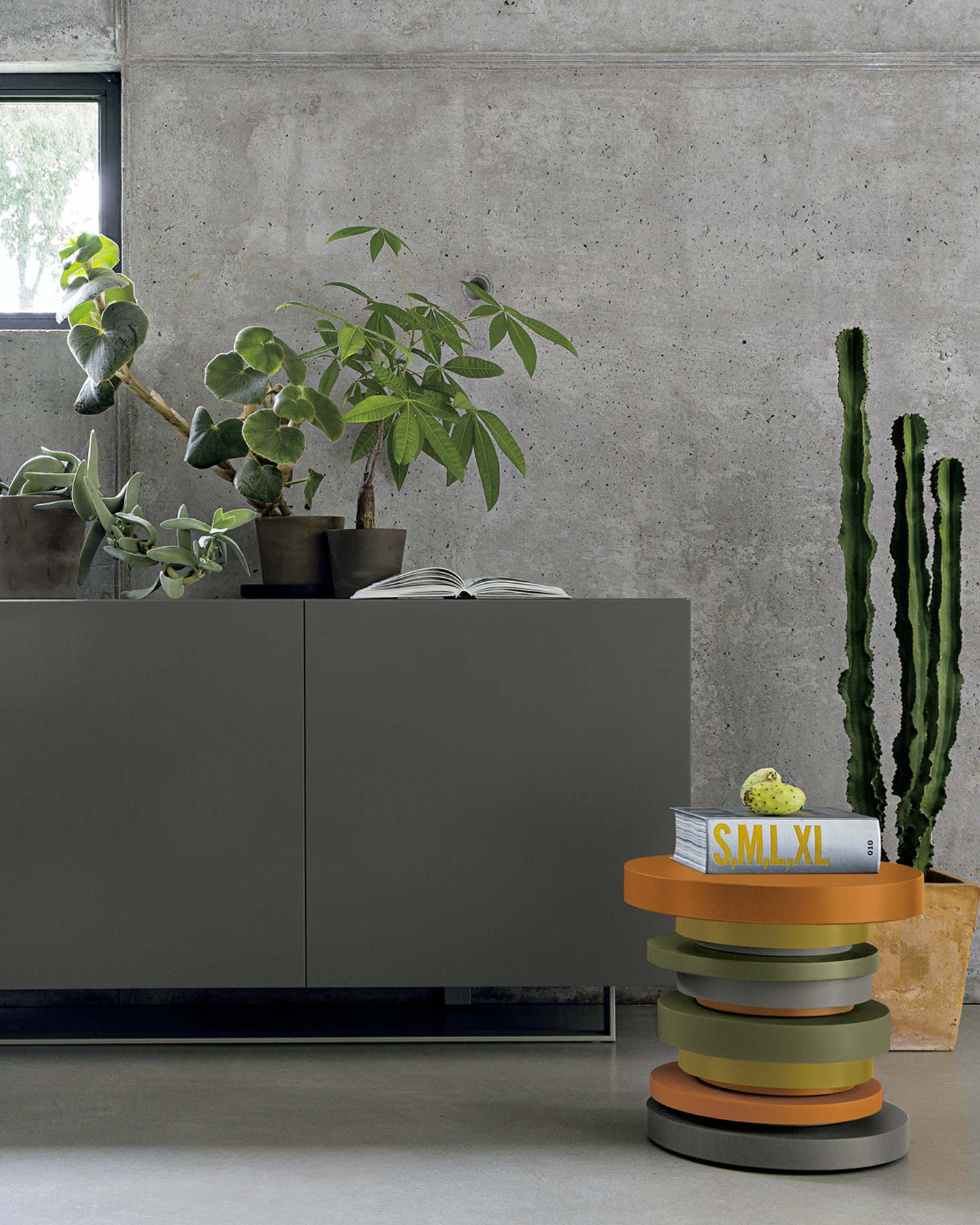 A side table with matte colors