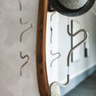 The scenographic Air ceiling coat hanger is a one-of-a-kind modern furniture complement. The designers Toso and Quaggiotto have created five curved rotating elements fixed to a steel cable hanging from the ceiling to become practical coat hooks. At the end of the pendulum, a steel cylinder grants stability, enriching this original object. This eccentric designer coat hanger is suitable for decorating a living room, a bedroom or a wardrobe room. It can also be used in contract interior design projects to surprise the guests at the entrance of a modern restaurant or an elegant dressing room.