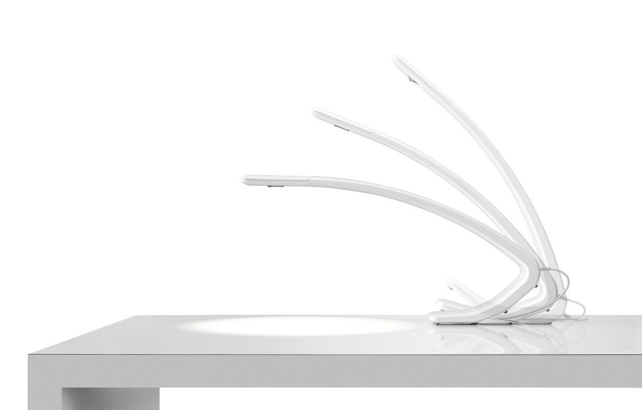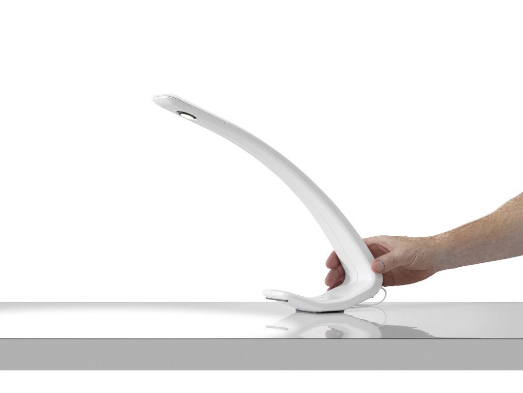 Made of a single piece, Amble dispenses light with none of the linkages and articulating joints usually associated with a task light. The only moving part is a gravity-actuated shade, which prevents direct line-of-sight glare when the light is in its highest position. The result is an elegant, adjustable light in a minimal form.