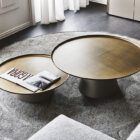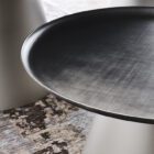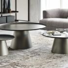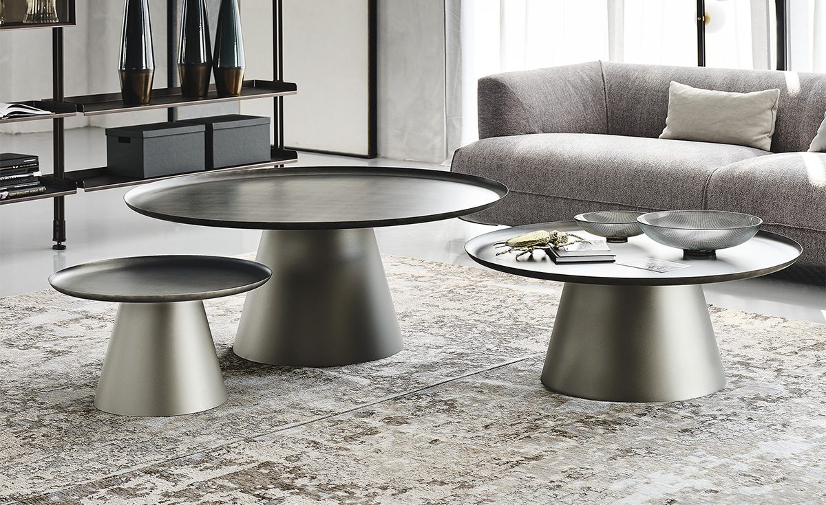 Amerigo round modern coffee tables enhance a contemporary living room with a linear yet refined look. These designer coffee tables consist of two simple overlapping shapes, and express themselves best when placed side by side in varying heights and sizes. By forming different layers, the round tops provide dynamism to sober and elegant furnishing, with these modern metal coffee tables taking centre stage. The conical steel base designed by Giorgio Cattelan, although heavy-looking at first glance, has a slender cut and a luminosity that makes Amerigo an elegant living room side table. The steel top is embellished by the handcrafted Brushed finish, which provides a tactile and luxurious effect.
