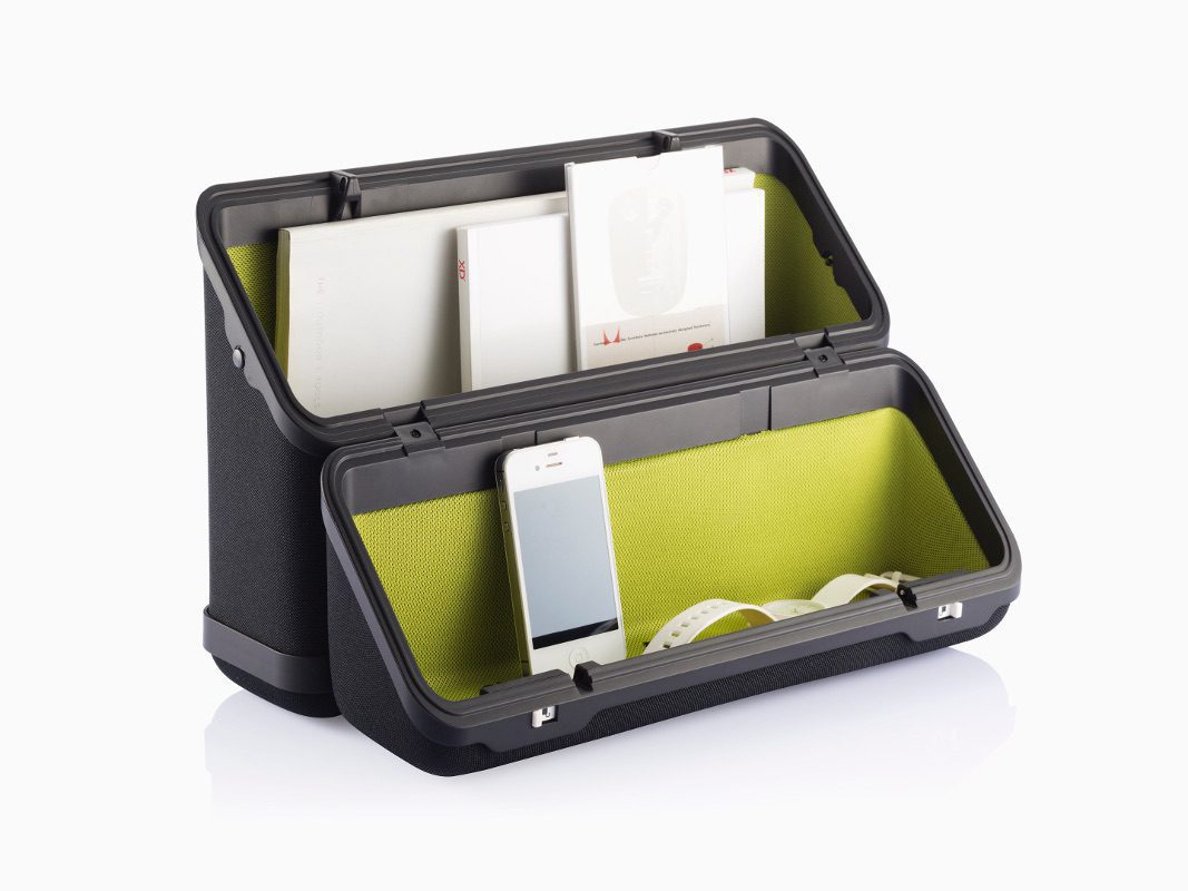 Positioned horizontally or vertically on the desktop, Anywhere Case provides a convenient and unobtrusive space to arrange stationery, notepads, business cards, paperwork and documents, enabling the user to work in a compact, efficient and effective manner, anywhere.