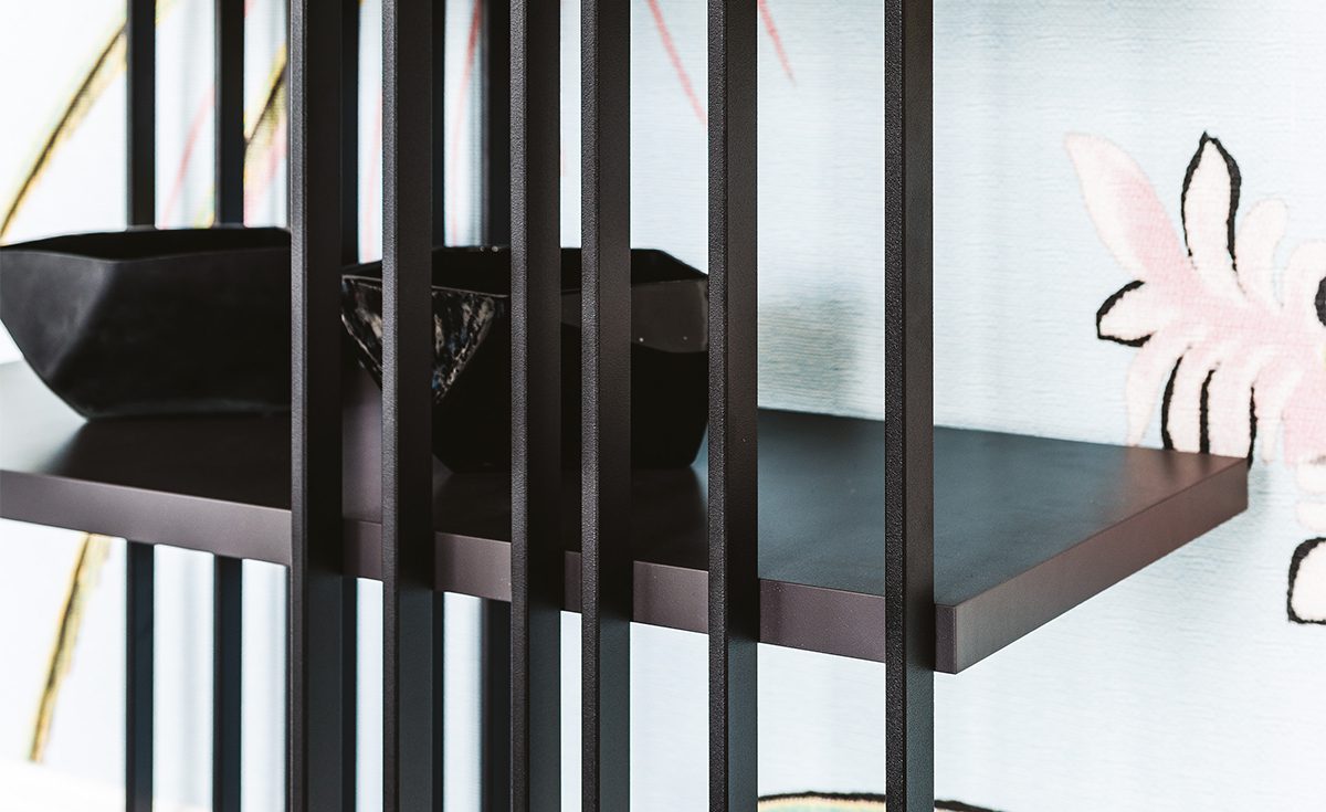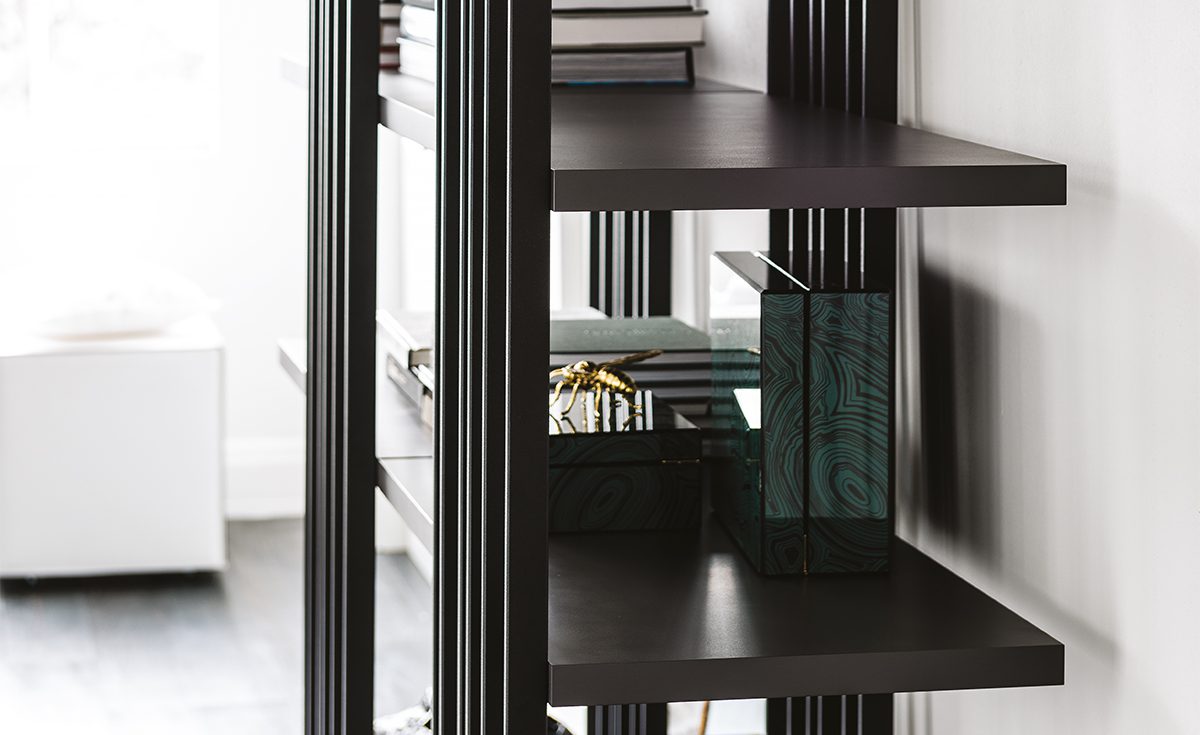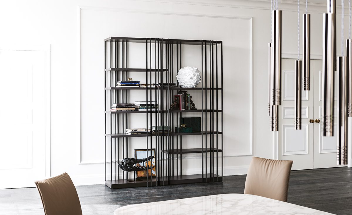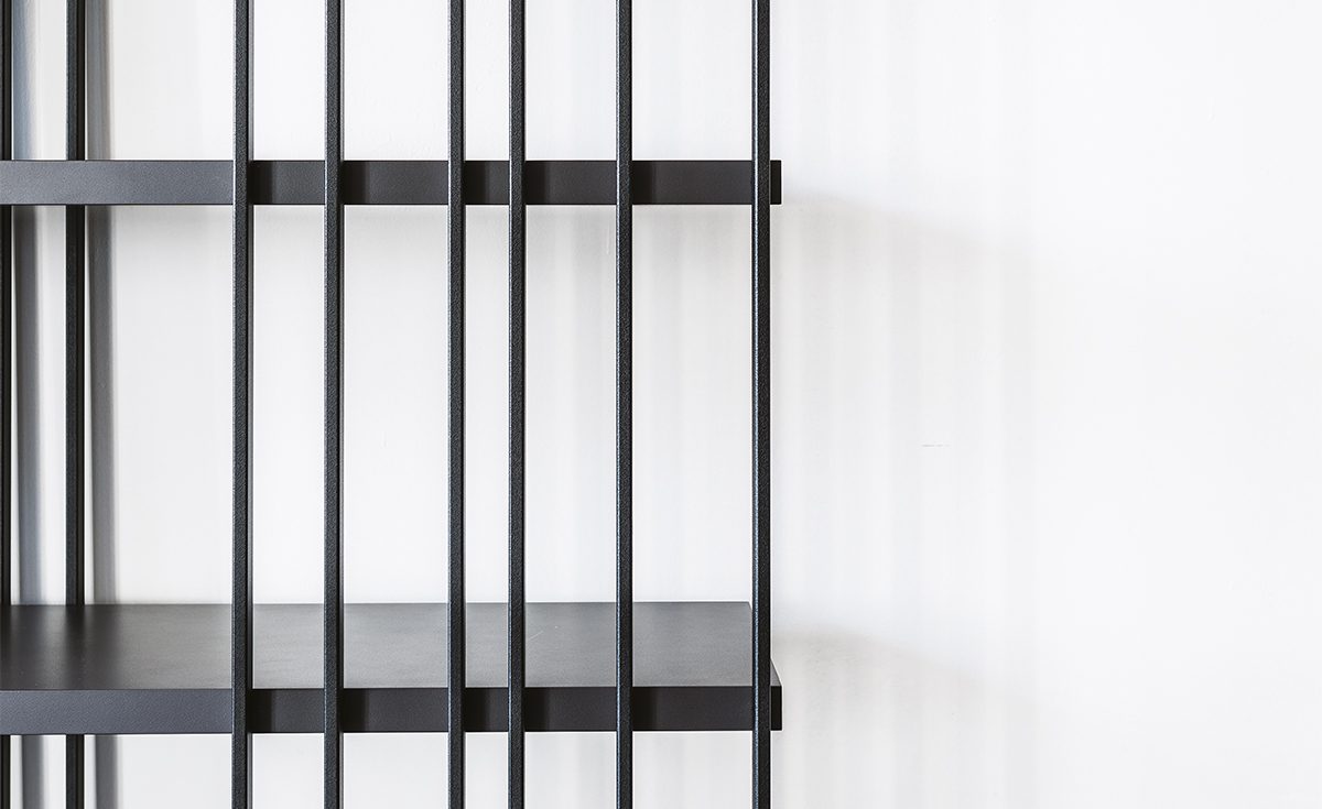 Conceived by Alessio Bassan, the Arsenal design bookcase is characterized by a cage-like structure, formed by vertical steel slats. These elements allow you to showcase and conceale your precious objects, at the same time.