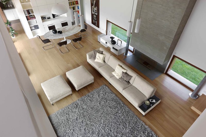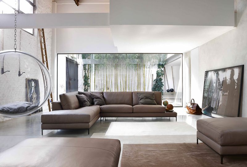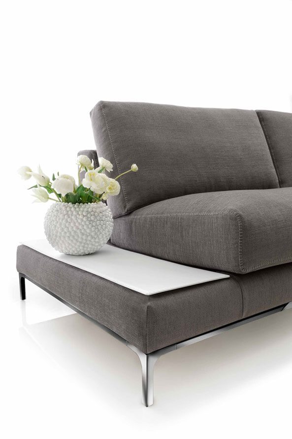 A sofa with an elegant line, highlighted by the particular cut of the armrests