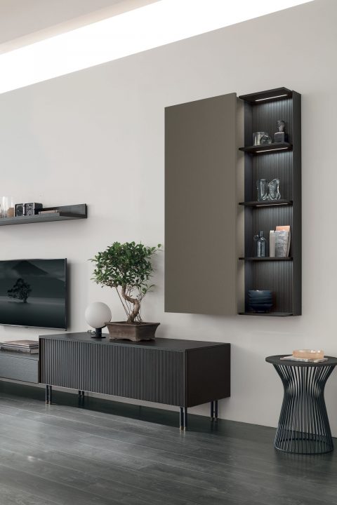 Photo finishes / Coal oak wood and reeded coal oak, textured coal oak, metallic cast iron 091 and anthracite 160 metal.