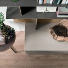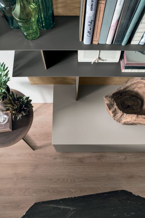 Photo finishes / Textured matt mother of pearl, textured light knotted, graphic design 413 and anthracite 160 metal.