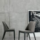A chair that seems to be square and austere at first sight, but which is welcoming in every situation. The backrest curves slightly inwards to hug the body, mirroring the angled back legs to accentuate the design.