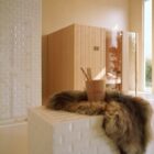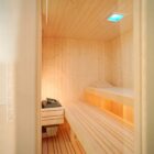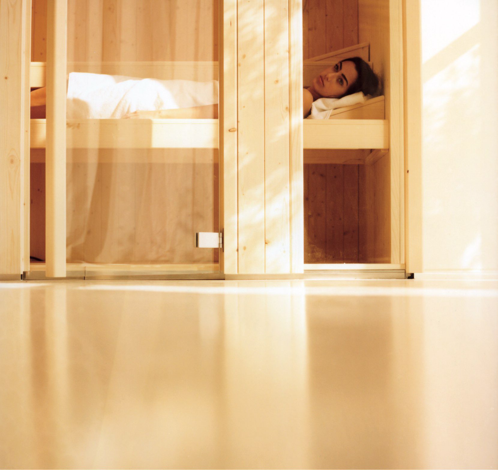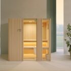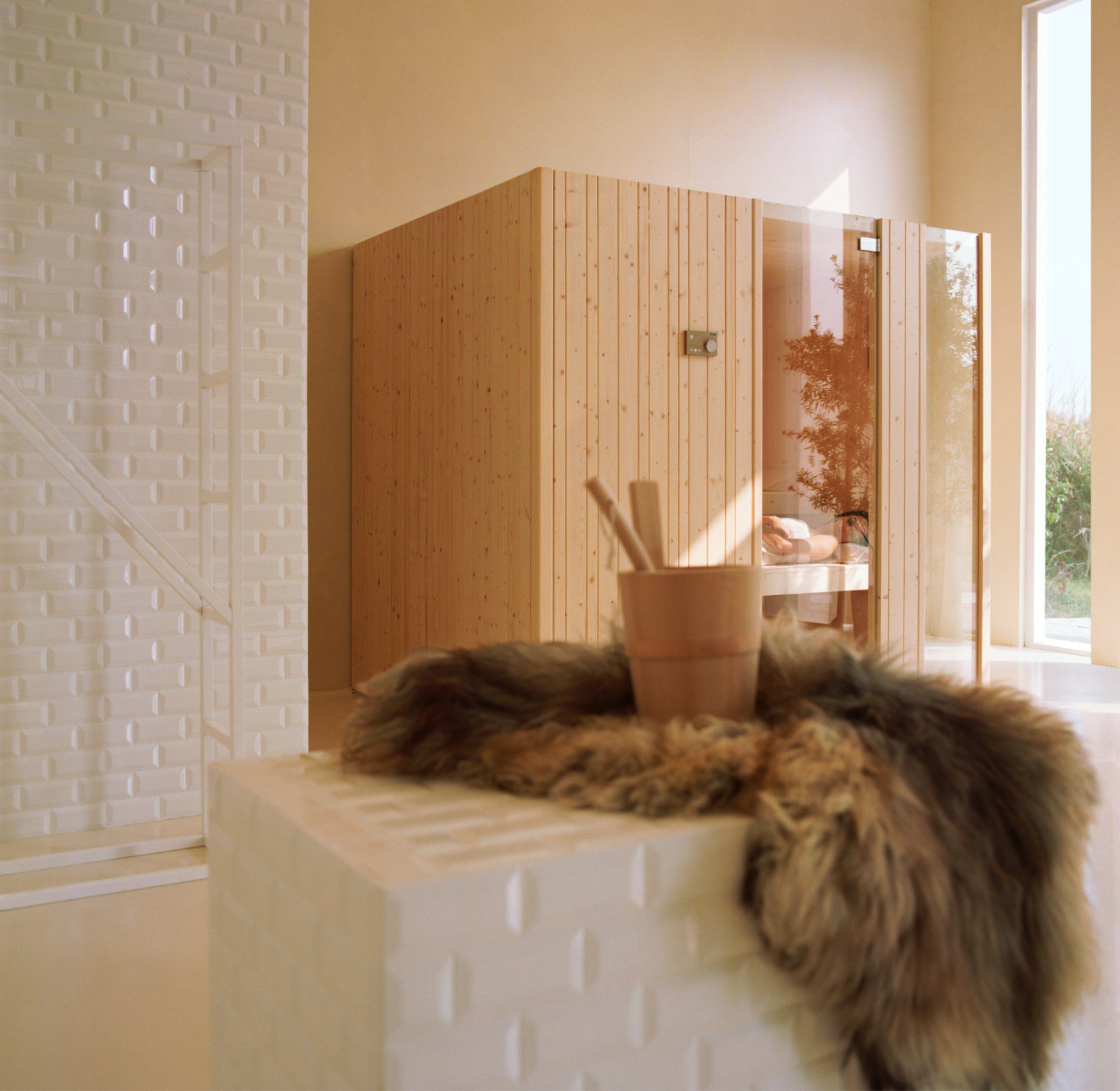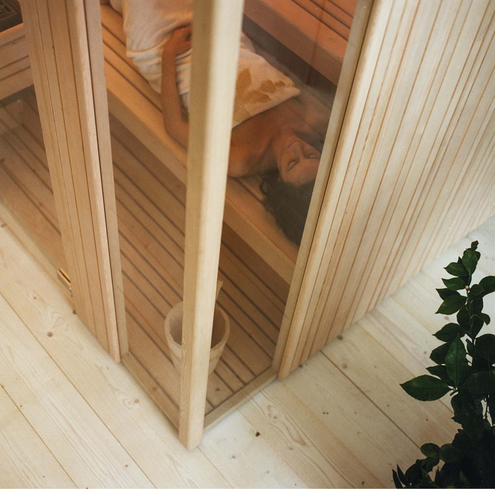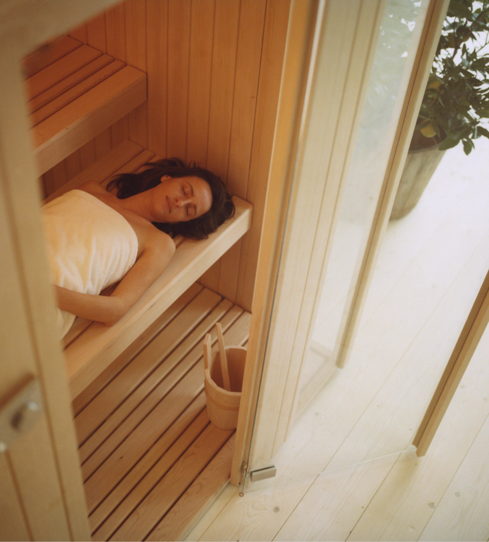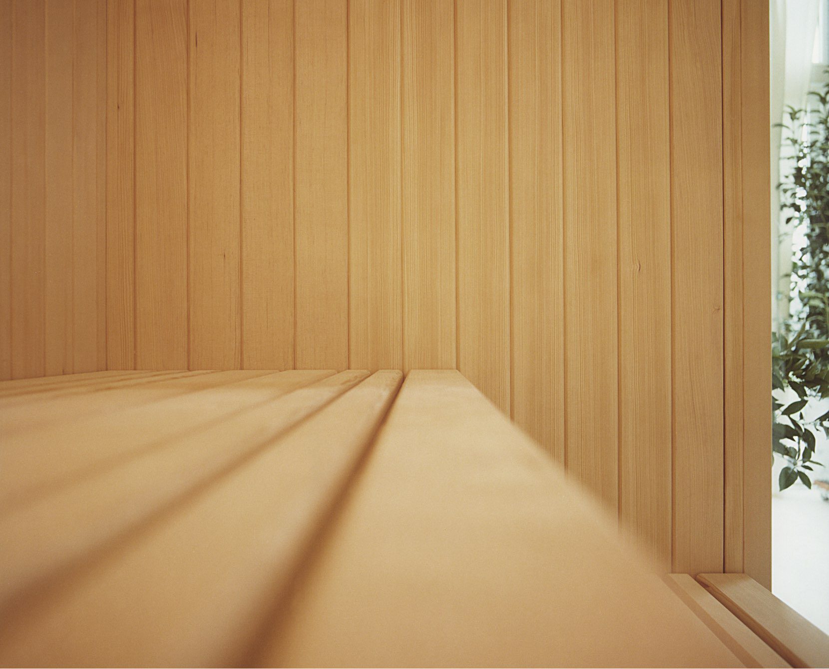 The sauna is made of superior wood and 8 mm low-emission toughened glass panels. The interiors are particularly welcoming with their different sized wooden slats. Auki can easily be adapted to fit the available space and is suitable for custom solutions. All Auki saunas have a stylish edge-mounted door handle that does not interrupt the glass panels, preserving the clean lines.
