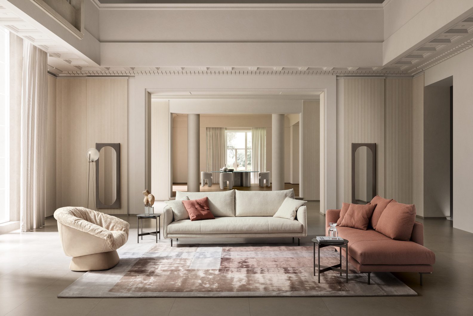 Avenue is a sofa characterised by rigour enriched with a few, measured features. The premise for the design was to create a sofa with a high seat and formal or informal backrests.