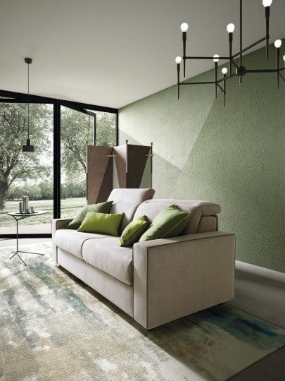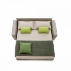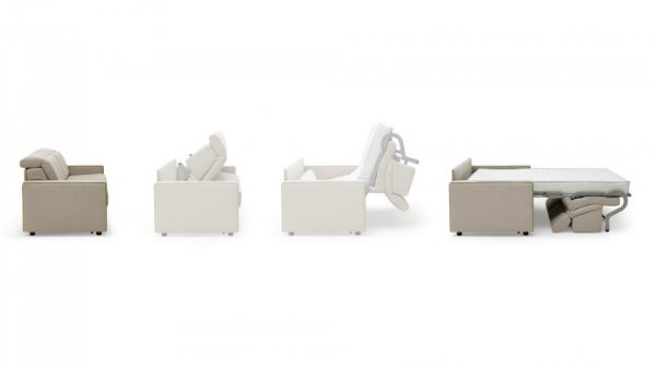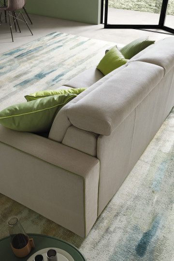 Barbados has a solid profile and its shapes are harmoniously assembled. It aims to cater to the diverse needs of domestic life thanks to its reclinable headrest and the customisable armrest, which is available in four options. Barbados elegantly accompanies you throughout your day and launches itself with energy into the night, eventually becoming a comfortable queen-sized bed.