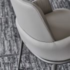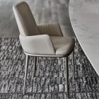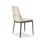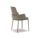 Chair with or without arms with frame in titanium (GFM11), bronze (GFM18), graphite (GFM69) or black (GFM73) embossed lacquered steel. Seat and back upholstered in fabric, micro nubuck, synthetic leather or soft leather as per sample card. The cover is not removable.