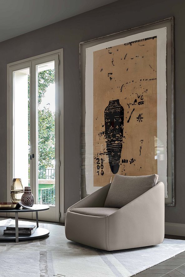 The act of transforming a simple shape into comfortable seating by removing some of its aesthetic parts makes Bend a recognisable yet unobtrusive object. Its soft shapes connect the bold, square volumes of its vertical surfaces. But Bend also displays sartorial details: the corners are made of vertical fabric or leather strips sewn on with double hems.