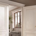 Hinged door with two leaves mod. Boheme C ssc white lacquer. Effe Classic satin brass handle