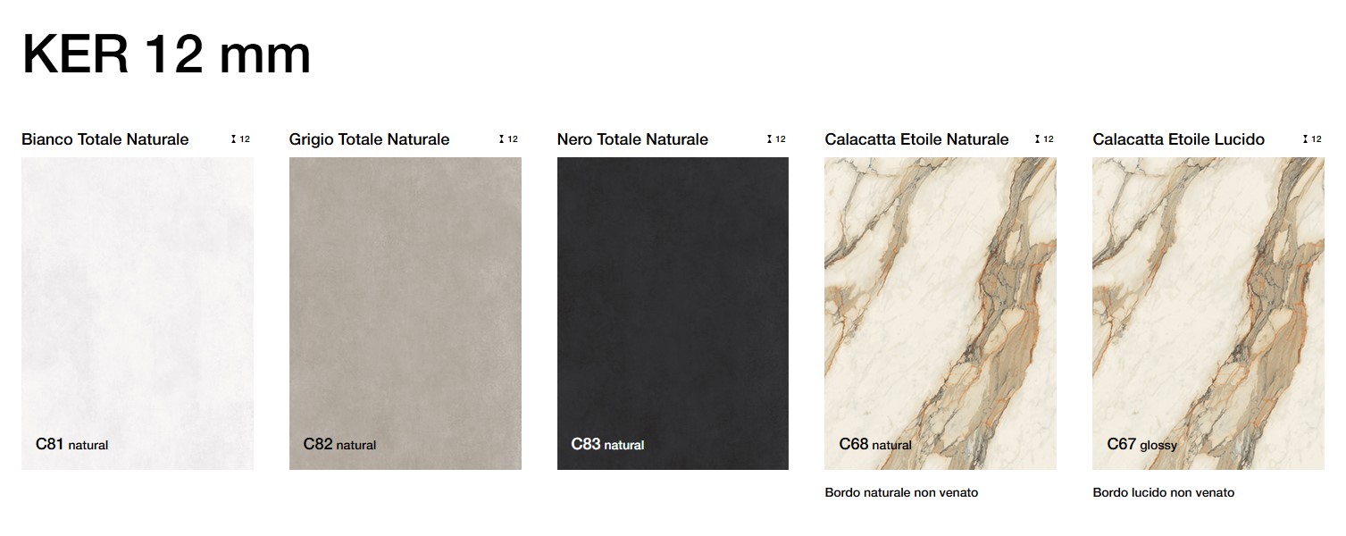 Ceramic stoneware is an agglomerate of natural materials, such as clay and quartzose and feldspathic sand, with the addition of metal oxide pigments, which is compressed and fired in a furnace at a temperature of more than 1,200°C. This gives the finished top its resistance to knocks and to thermal shock. The colour will not fade, and the surface is scratch-resistant. The top is hygienic, safe, and does not transfer any chemical agents to the food.