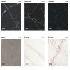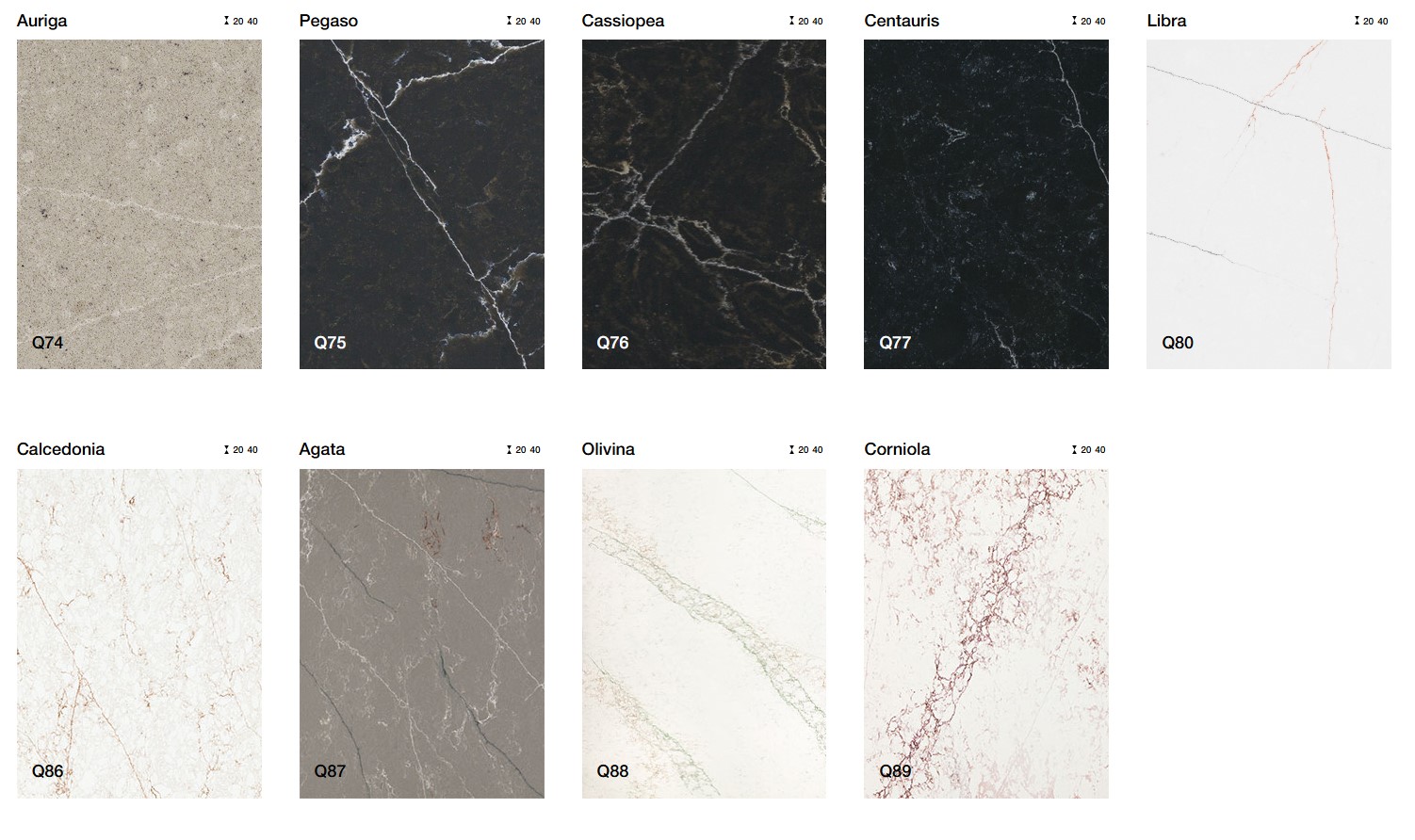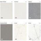 Quartz agglomerate is a material produced in the form of sheets by a special process called “vacuum vibrocompaction”. The sheets are obtained by mixing silica sand or pure quartz (95%) with structural polyester resin (5%) and UV-stabilized colour pigments. The resulting material is ideal for use in the production of furniture, since it maintains the physical and mechanical characteristics of the original materials.