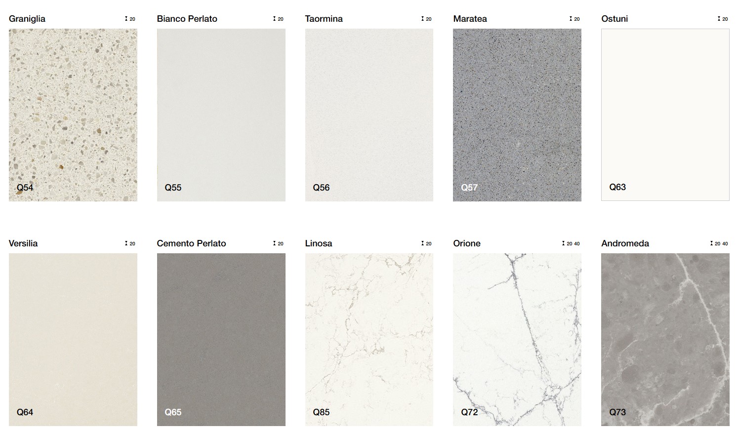 Tops in quartz agglomerate are highly resistant to scratching; they also absorb very low quantities of water are highly resistant to chemical agents. The polished quartz tops are non-porous and extremely easy to clean, since no dirt can penetrate the surface.