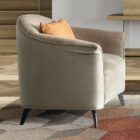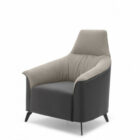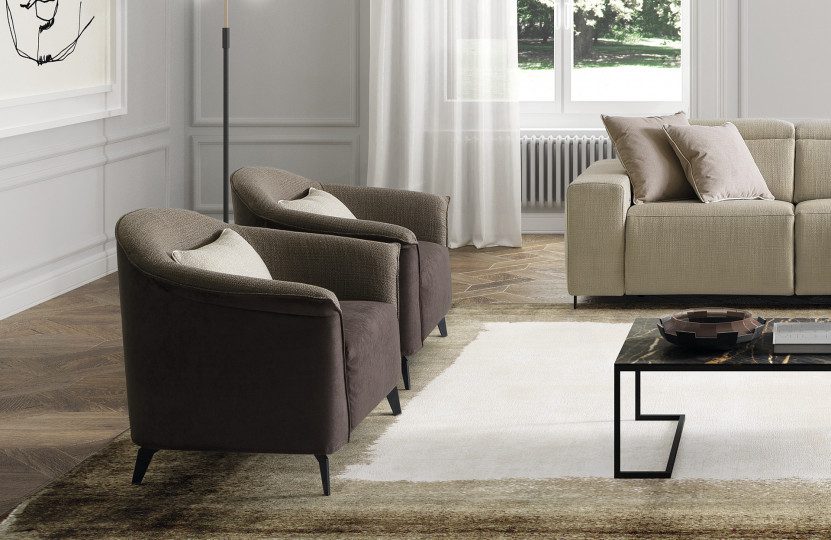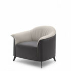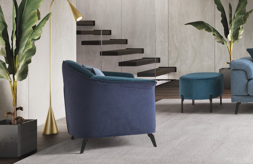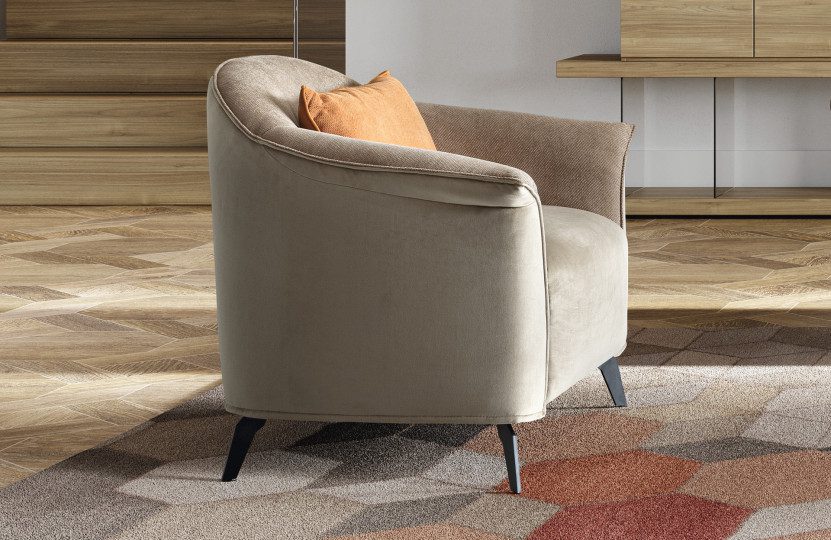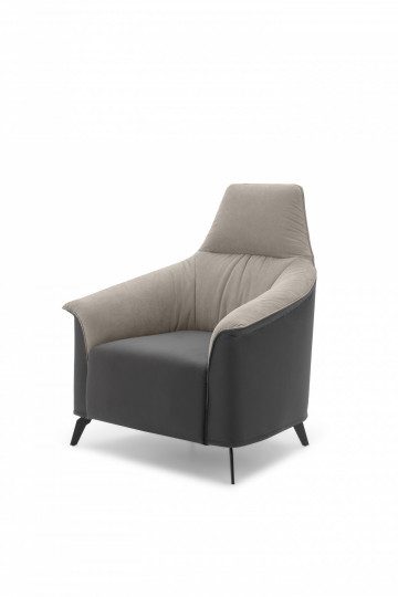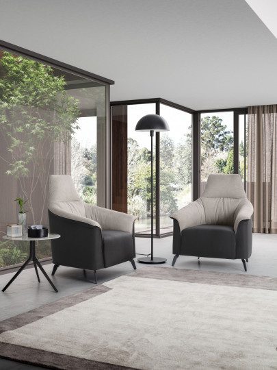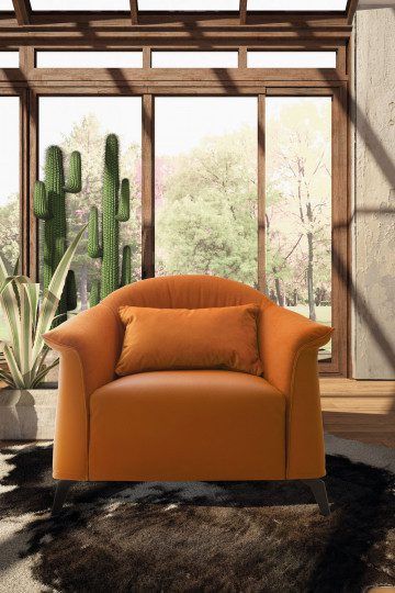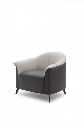 This armchair is small, but its seat is deep and wide. Caroline explores the surrounding environment in a creative and investigative way: it breaks up with the linearity of horizontal planes thanks to its lateral foldings, which are highlighted by the chromatic contrast of the upholstery. The top of its back rail calmly glides towards the edges of the armrests, which will support you with a reassuring embrace.