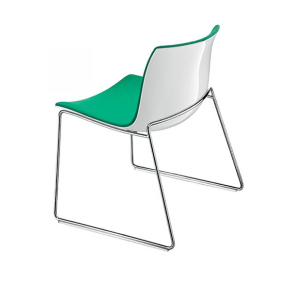 Lounge chair with sled base in chromed steel.
