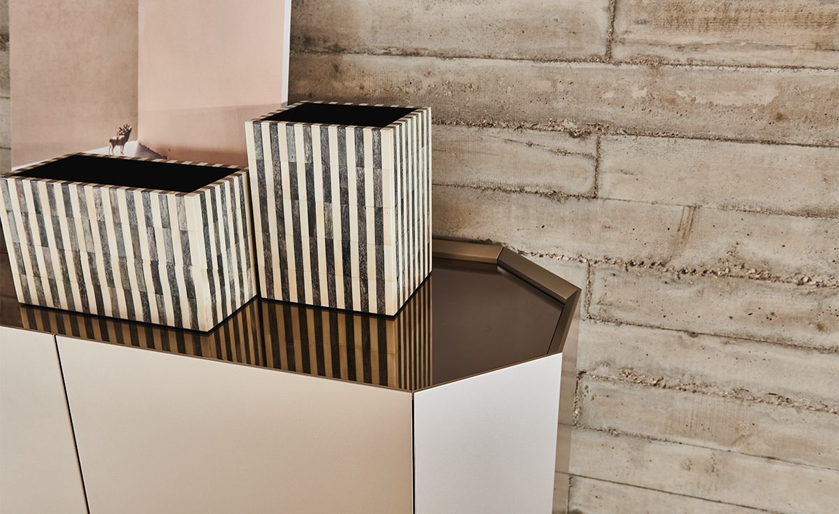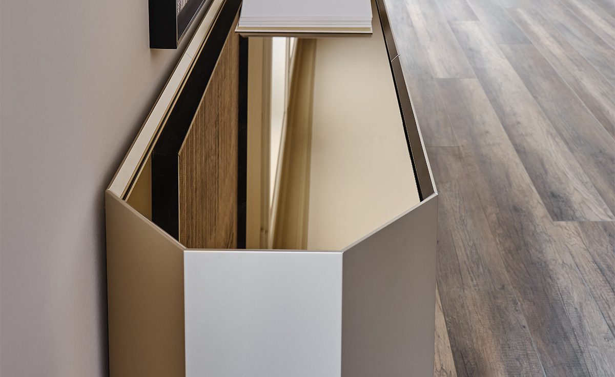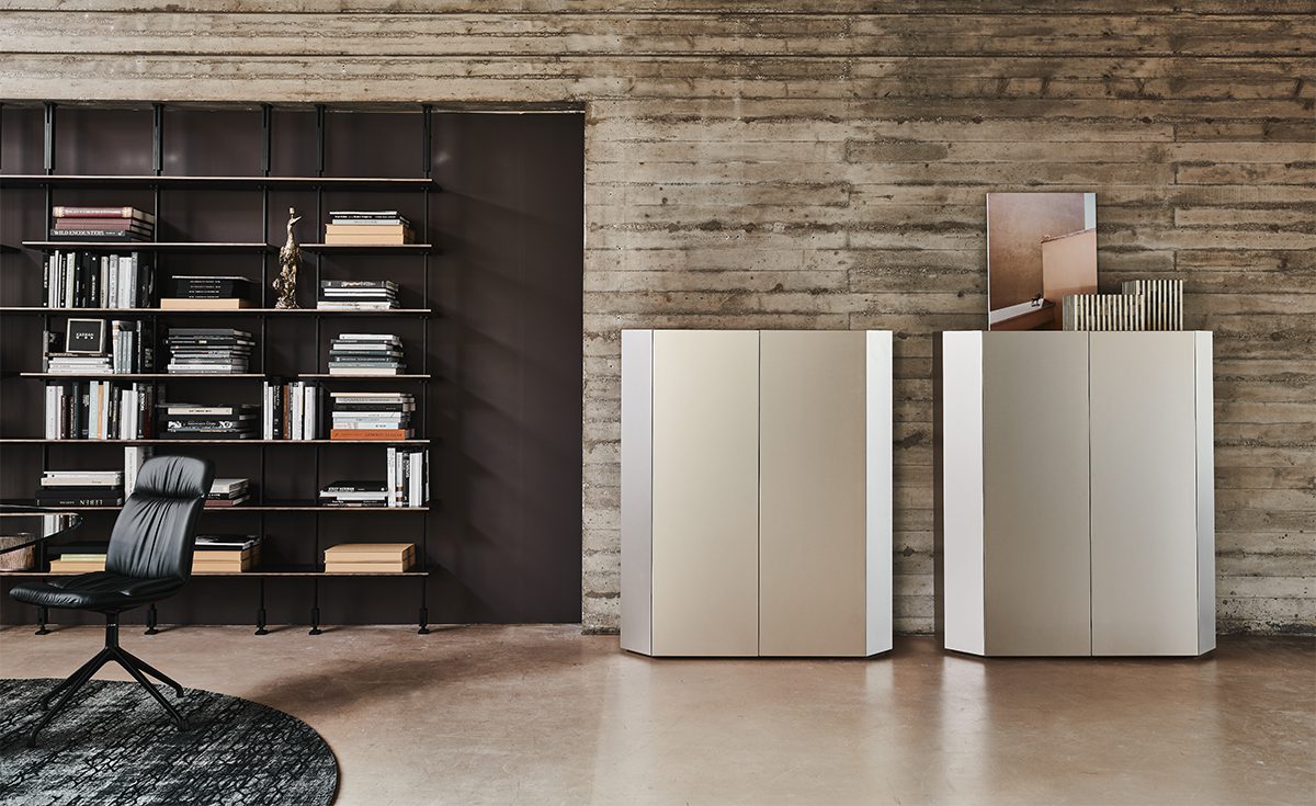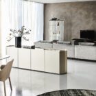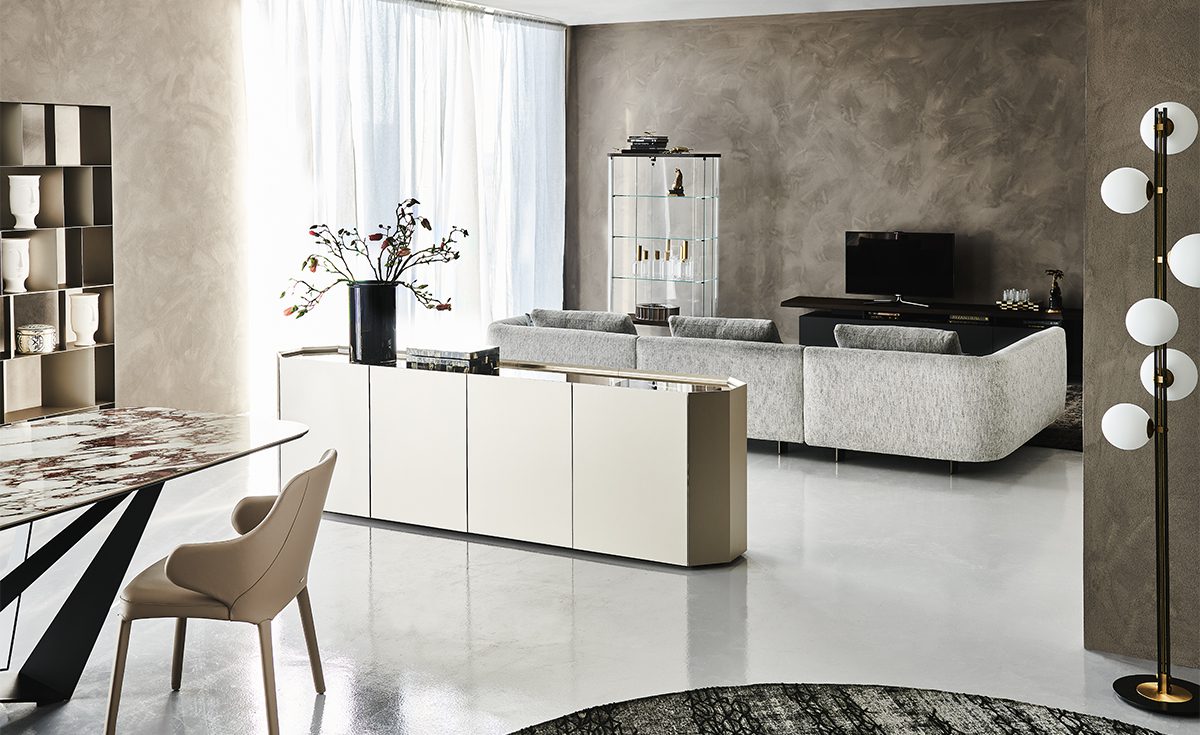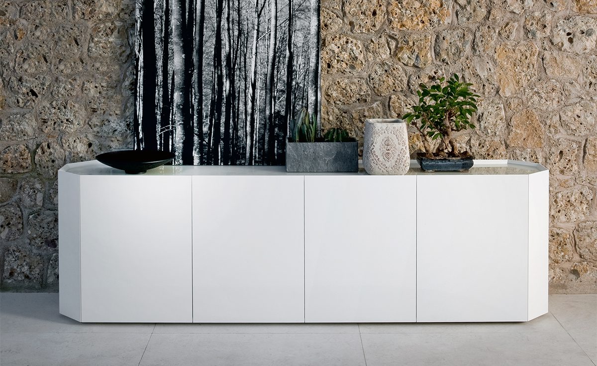 The sculptural and geometrical Chelsea modern sideboard, designed by Alessio Bassan, integrates harmoniously into the living room style, both in residential and contract interior design projects. This minimalistic cabinet with an eclectic taste is enriched by fine details and exclusive finishes, such as the transparent glass top. Chelsea is equipped with fine shelves in transparent glass with the purpose of storing the most valuable and exquistite objects.