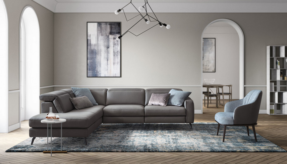 A chaise longue by the side is a guarantee of comfort: Christopher takes it to the next level and duplicates it, thanks to its bubbly structural dynamism. This model is provided with an innovative electrical relax function, which ensures the improvement of well-being. The technological attitude of this sofa, which nonetheless aims to fulfill a traditional goal, is increased by the possibility to remove the upholstery notwithstanding its several devices.