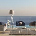 It is a composition of objects that can be arranged in multiple layouts but always maintain a sense of calm, elegance and simplicity. The balance between the rigid, geometrical but flexible shape of the sofa finds its counterpart in the softness of the lounge chairs. The family comprises also of many other different elements that freely take part in a play between characters that shall easily and happily respond to any mood of your day.