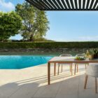 The seat of the padded tube chair of the Cleo Soft Wood collection is characterized by the same design as the lounge chair.Thanks to this feature it can be easily combined it with all the elements of the collection, especially those with soft lines. The wooden structure supports the weatherproof cushions, with removable and easy to wash covers. The padding is in quick dry foam