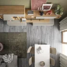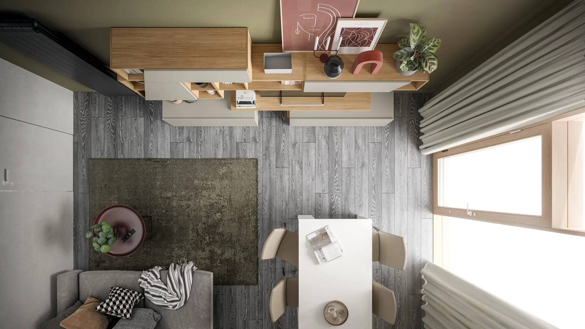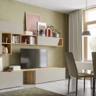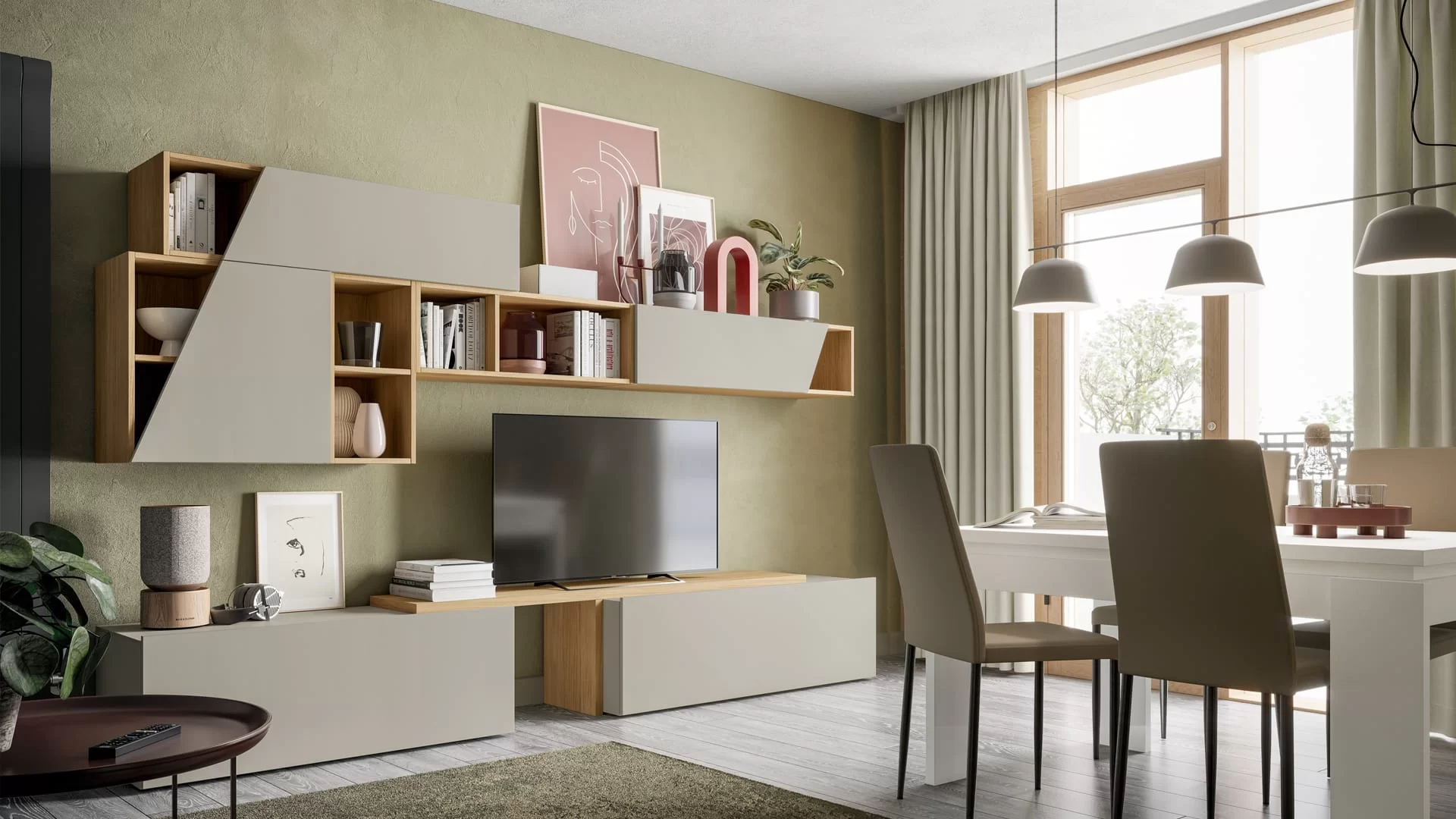 Oblique cuts, a contrast between empty and full spaces and combinations of finishes ensure a living area that is dynamic and creative. The two base units are intriguingly joined together by the Taos bench.