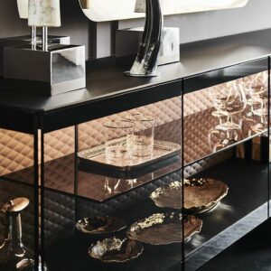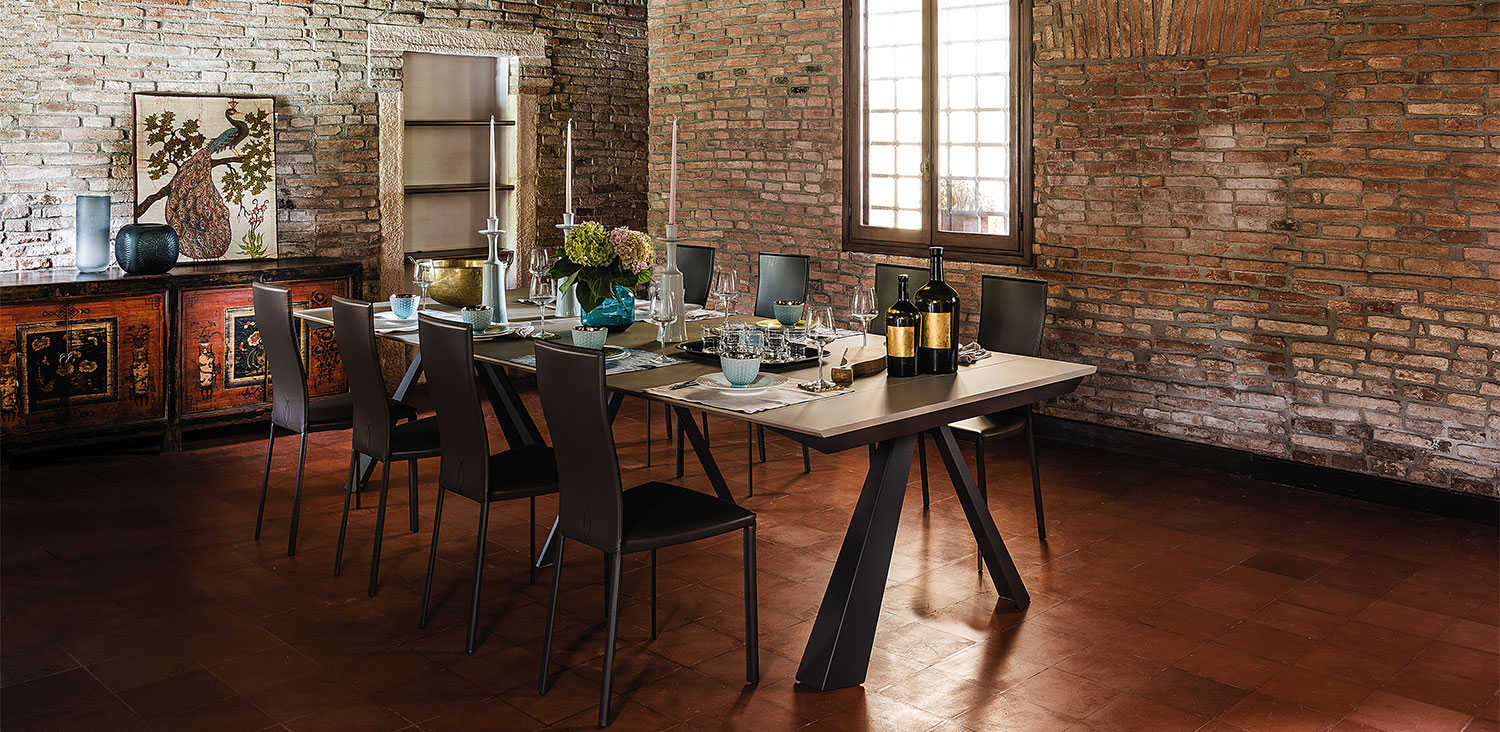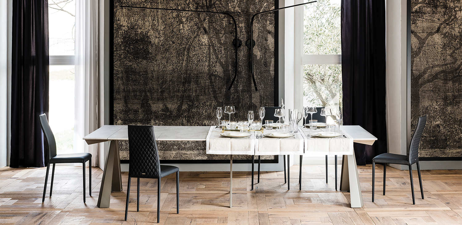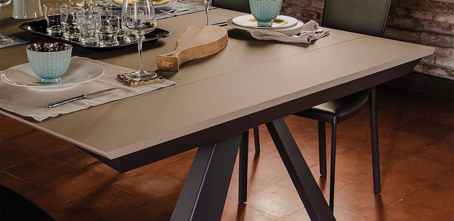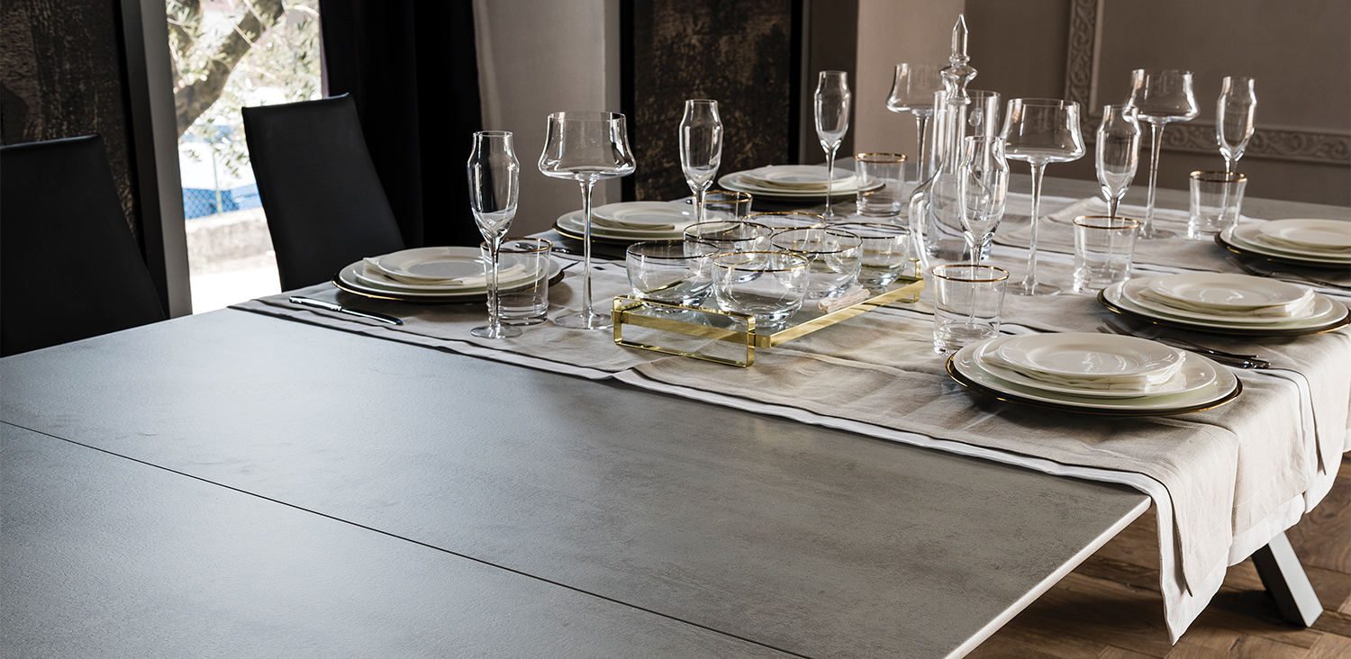 Extendible console with base in titanium (GFM11), white (GFM71) or graphite (GFM69) embossed lacquered steel or in satin stainless steel. Top and extensions in white climb (LM02), grey oxide (LM06), walnut (LM05), cement (LM07), grey London Fenix (LM21) or castoro Ottawa Fenix (LM22) laminated wood. Bag for extensions included.