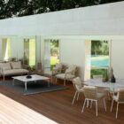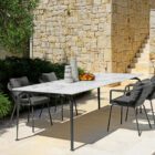 The soft and embracing shape of the Dining Armchair of the Cruise Alu Collection makes the product perfect to furnish your garden. The aluminium structure supports the body perfectly wrapped by the quick dry foam cushions. The fabric, resistant to weather conditions, goes along with the synthetic ropes which envelope the backrest and the armrests making the armchair the ideal furniture for outdoor.