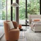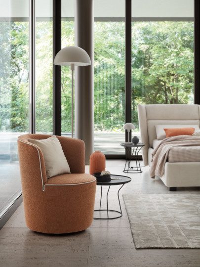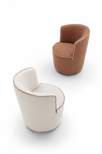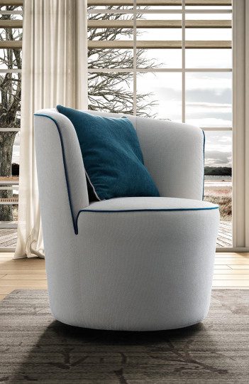 Sinuous and fluid volumes, circumscribed by an alternating raised trim, this armchair seems to recall the constant and energetic motion of the deep sea streams, hidden below the calm of the surface.