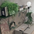 Photo finishes / Diagonal sideboard, Var. B, textured mocha oak carcass, textured mocha oak and textured cava cement front. Calatorao silk 070 stoneware top. Anthracite 160 metal open shelf unit and base.