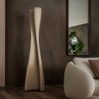 When interior design meets sculptureDiploma is born—a floor lamp with a powerful visual impact that transforms your contemporary living space into a true art gallery. The warm and soft light, perfect for relaxation in a lounge area, comes from a LED strip embedded within the silhouette, emphasizing the material aspect of the clay finish. Each piece is unique: every floor lamp is manually finished, bearing all the precious imperfections inherent in this material. Its sinuous structure evolves from the golden ratio yet follows the free-flowing impulse of curved lines, resembling a rolled parchment. Thus, Diploma becomes the emblem of what is meant to endure over time—a designer floor lamp suitable for any environment, from modern living rooms to classic spaces.