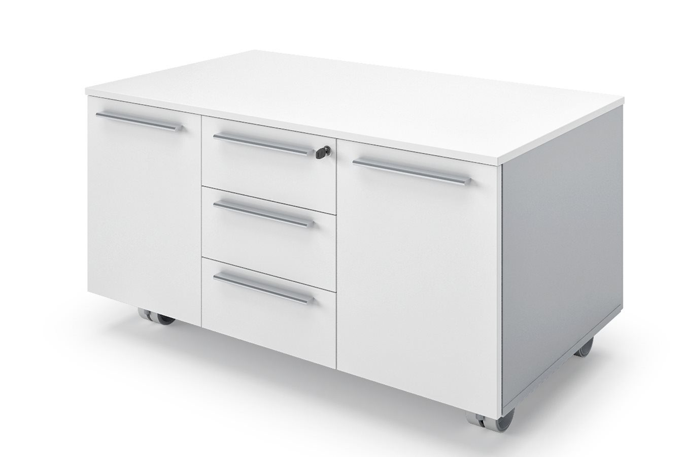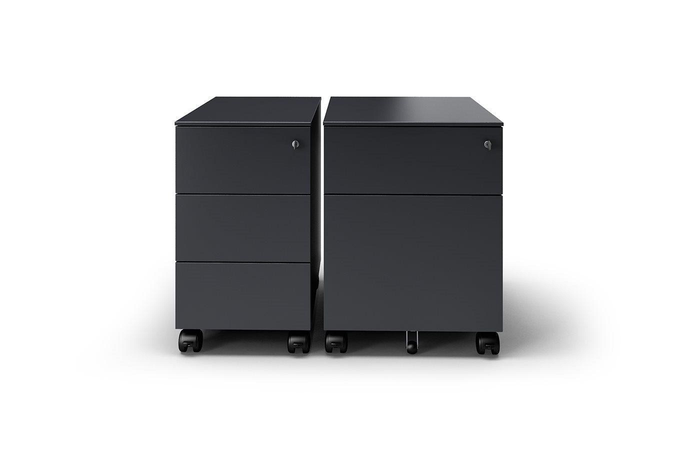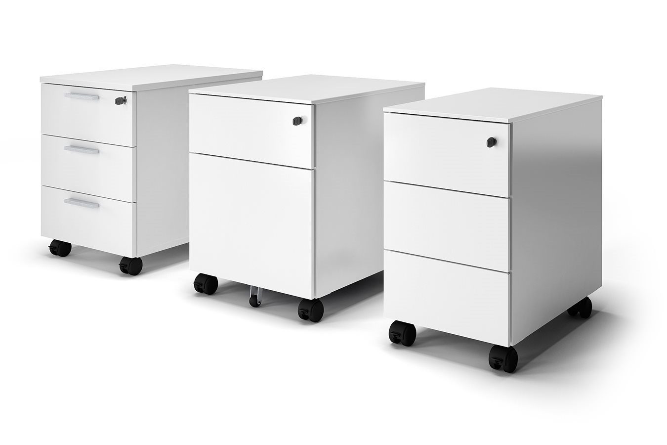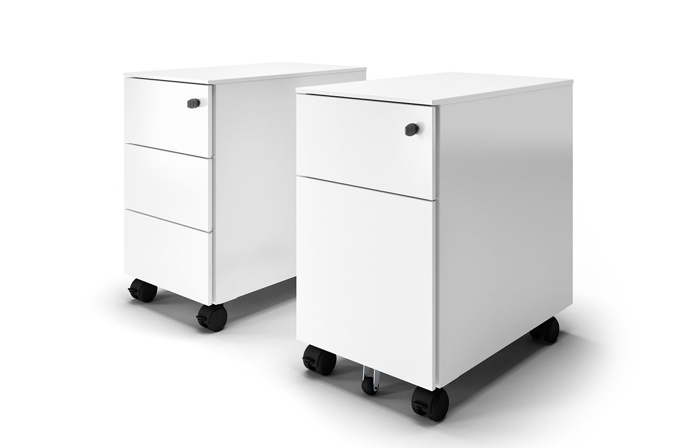 The “universal pedestals” are available in a metal, melamine, or veneer version and can be completed with useful specific accessories to tidy the drawer space.