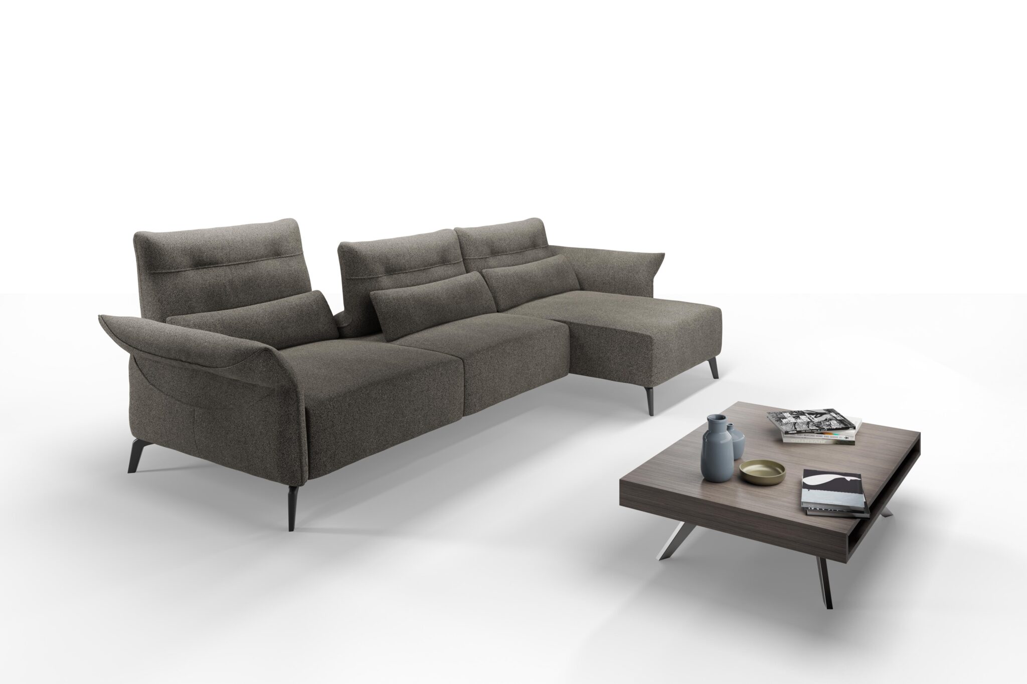 An innovative configuration of the space with unique lines that allow personalized comfort thanks to the adjustable backrests and armrests. This sofa, made with a flexible design, adapts to all activities in the living area.