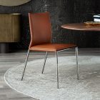 Chair with steel structure in chromed (08), titanium (GFM11), bronze (GFM18) or black (GFM73) finish. Cover in fabric, micro nubuck, soft leather or synthetic leather as per sample card. The cover is not removable.