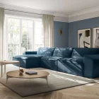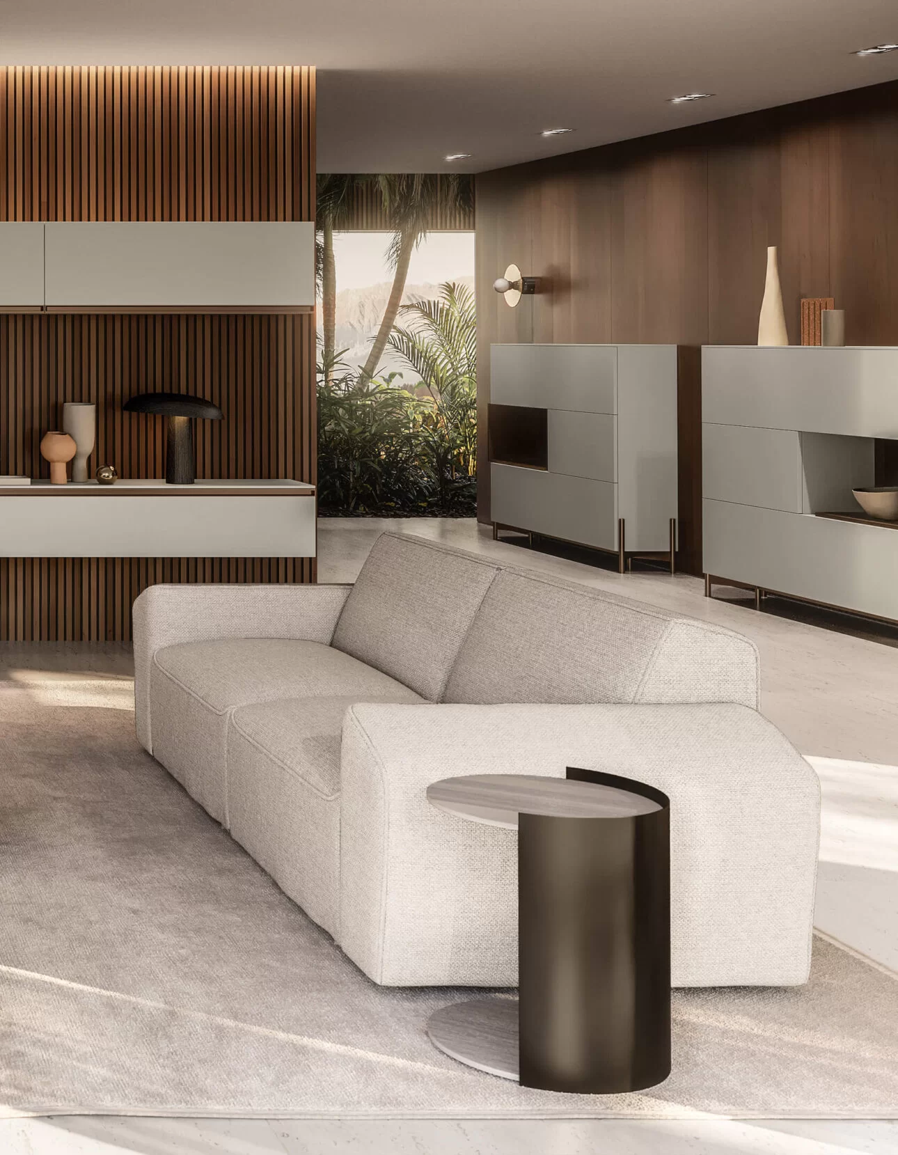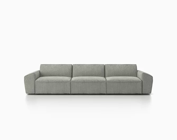 The upholstered seats of the Evan sofa – featuring environmentally sustainable Urbino fabric, available in a range of colors – have fully removable covers. In fact, every part of the sofa, from the wooden frame to the upholstery, can be fully disassembled. The Evan sofa furnishes domestic space with a range of soft and spacious seats, enabling many highly comfortable and functional configurations, particularly paired with other pieces of furniture.