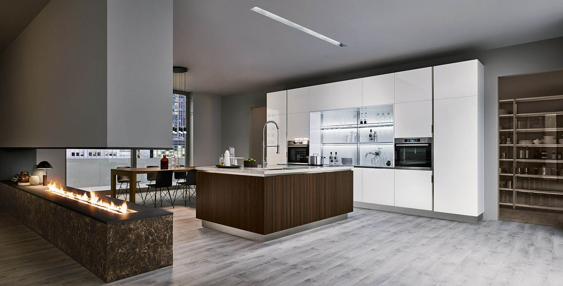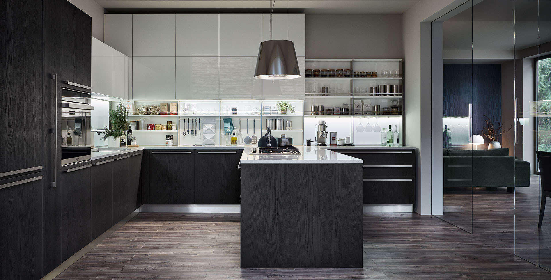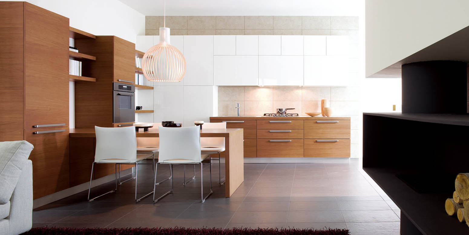 Wood as the hallmark trait of a range that walks the cutting edge of design without sacrificing spontaneity. Dedicated to the more demanding, who seek the combination of wood finishes with matte and gloss lacquers. The opening system of the doors is innovative, with a handle recessed in the thickness and with a profile, horizontal for base units and vertical for tall units, available in several finishes is in addition to the more traditional handles.