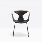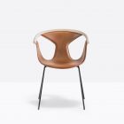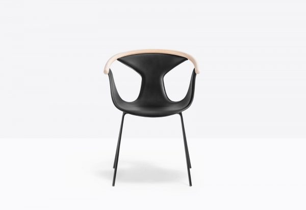 Fox Soft is a stylish collection of armchairs with a distinctive personality and compact dimensions, defined by its harmonious mixture of materials and contrasting geometric lines. Armchair with upholstered polypropylene shell in genuine leather, bent solid ash wood backrest, and steel tube legs Ø 14mm.