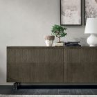 In addition to the Tracks base with double legs, this sideboard stands out for the double finish on the same door: smooth below and reeded above. Sought-after processing and style details always make the difference.