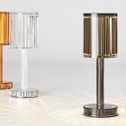 A lamp, where the material reproduces the shapes and sensations of engraved glass.