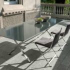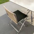 The dining chair of the George collection combines a stainless steel frame with interwoven synthetic ropes in the backrest and the seat. Thanks to a play of interlocking ropes the chair is easy to fold.