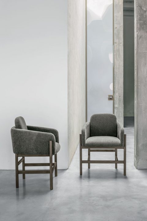 A chair that almost seems to be an armchair: padded backrest and armrests create a whole and the cushion adds further comfort. To exalt the comfort around a table, or for creating a true reading nook.