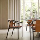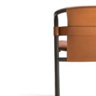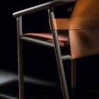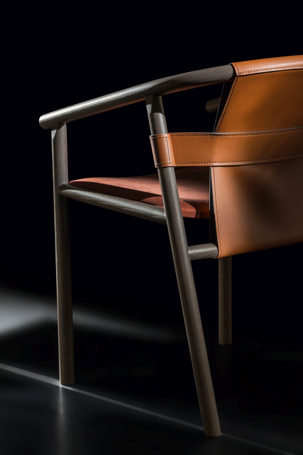 Wood and natural leather are used to create this elegantly refined piece, featuring exclusive leather work on the backrest.