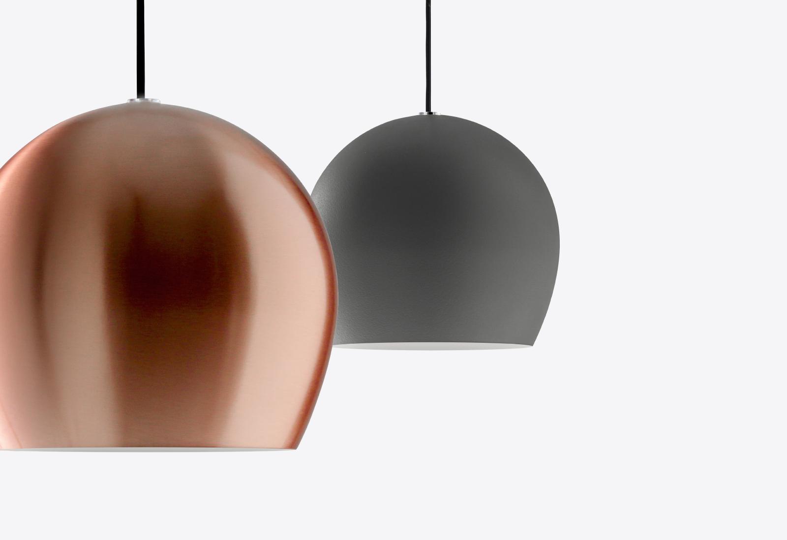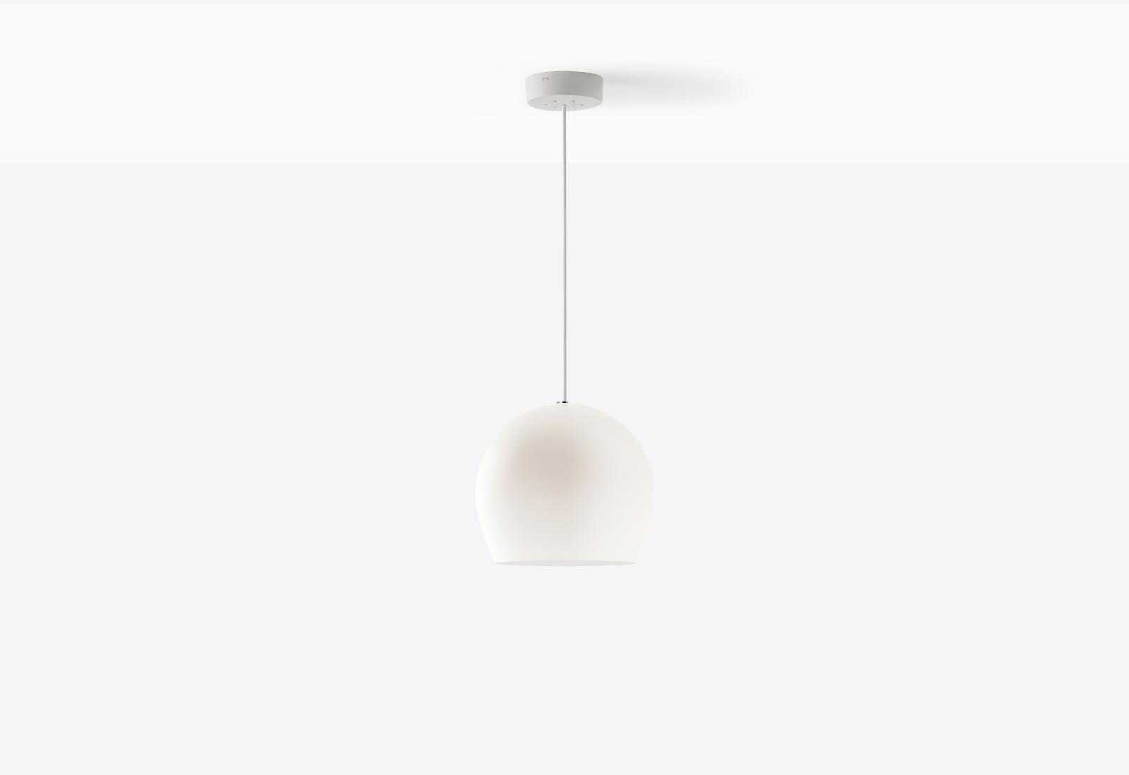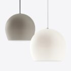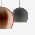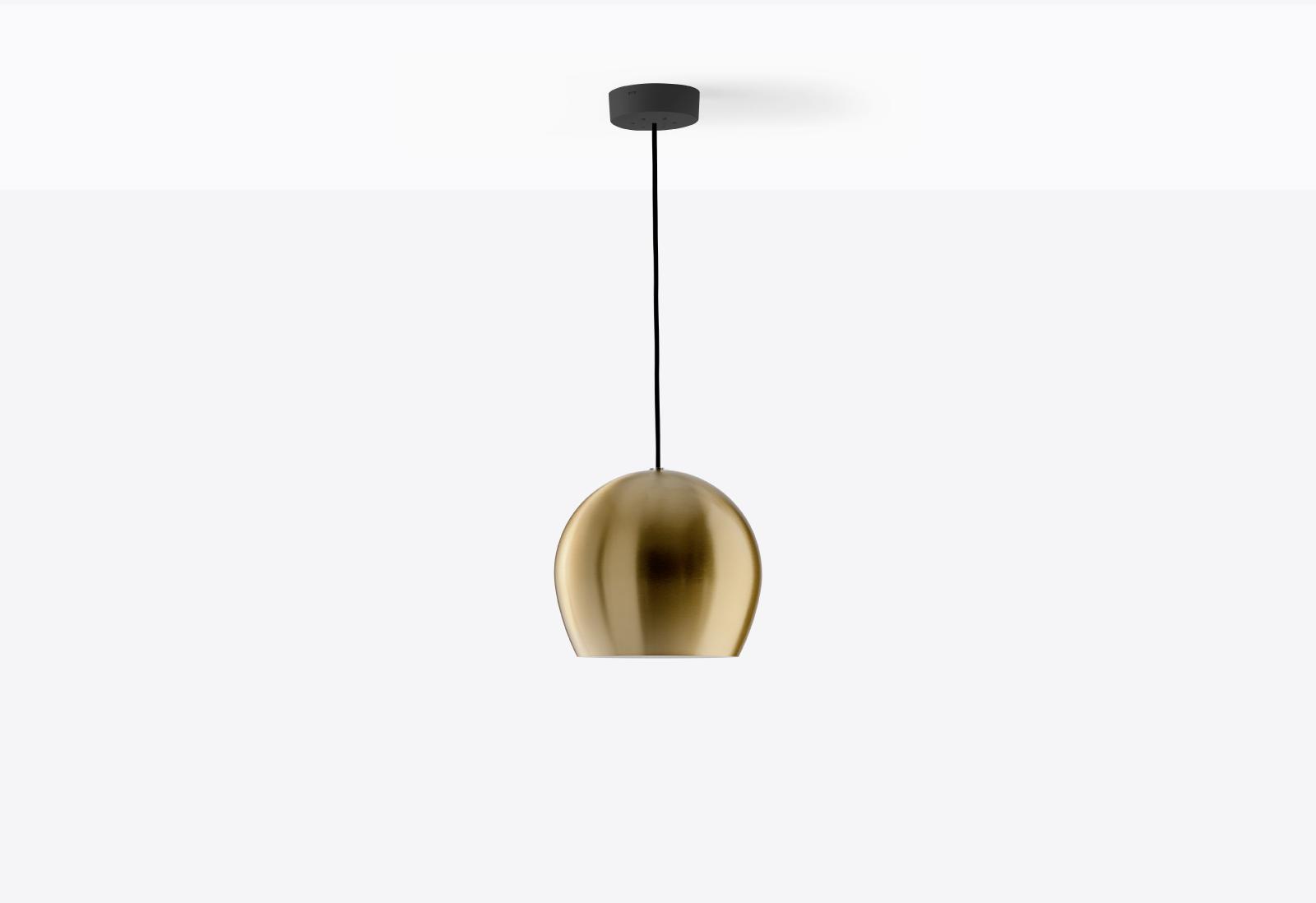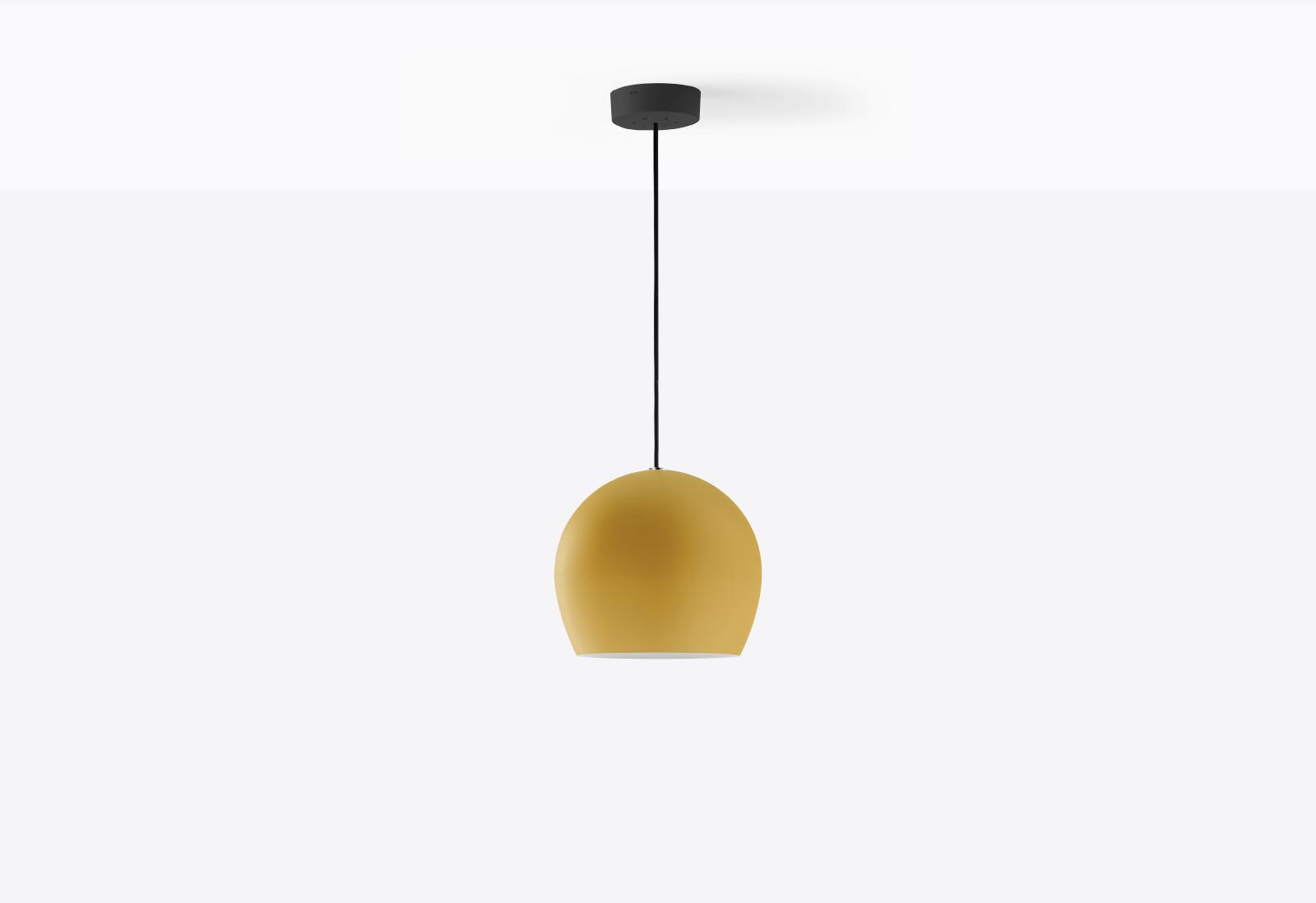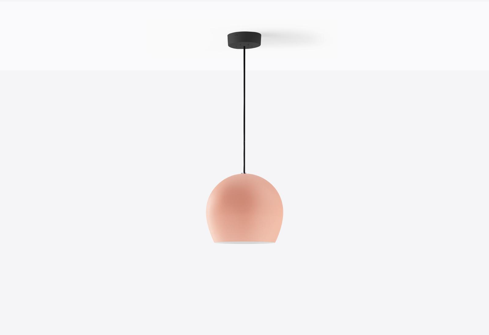 Isotta is a small pendant lamp that combines style and elegance and draws inspiration from the shape of the headlights of early 20th century cars. Made of aluminium powder-coated in different colours, it stands out for its soft, enveloping shape. The light is emitted downwards and upwards, through a hole in the upper part of the diffuser, which emits a delicate light beam towards the ceiling.