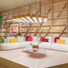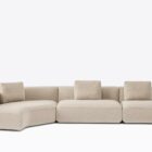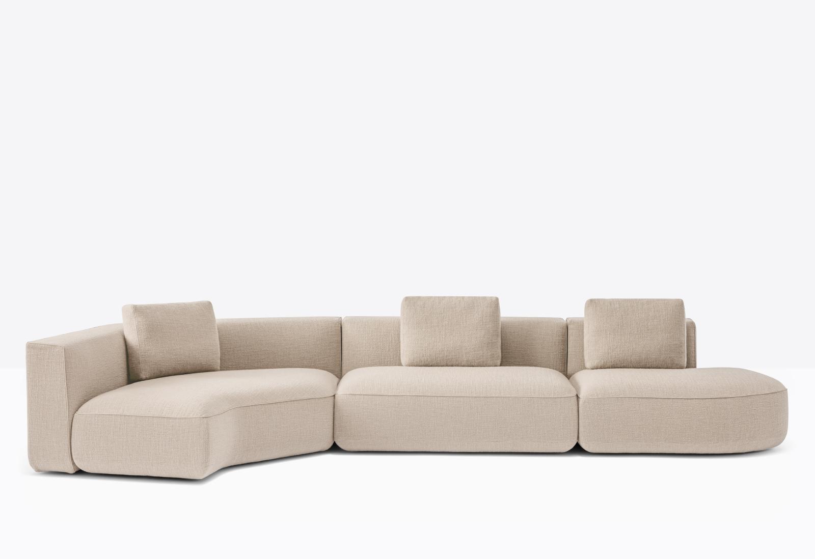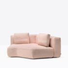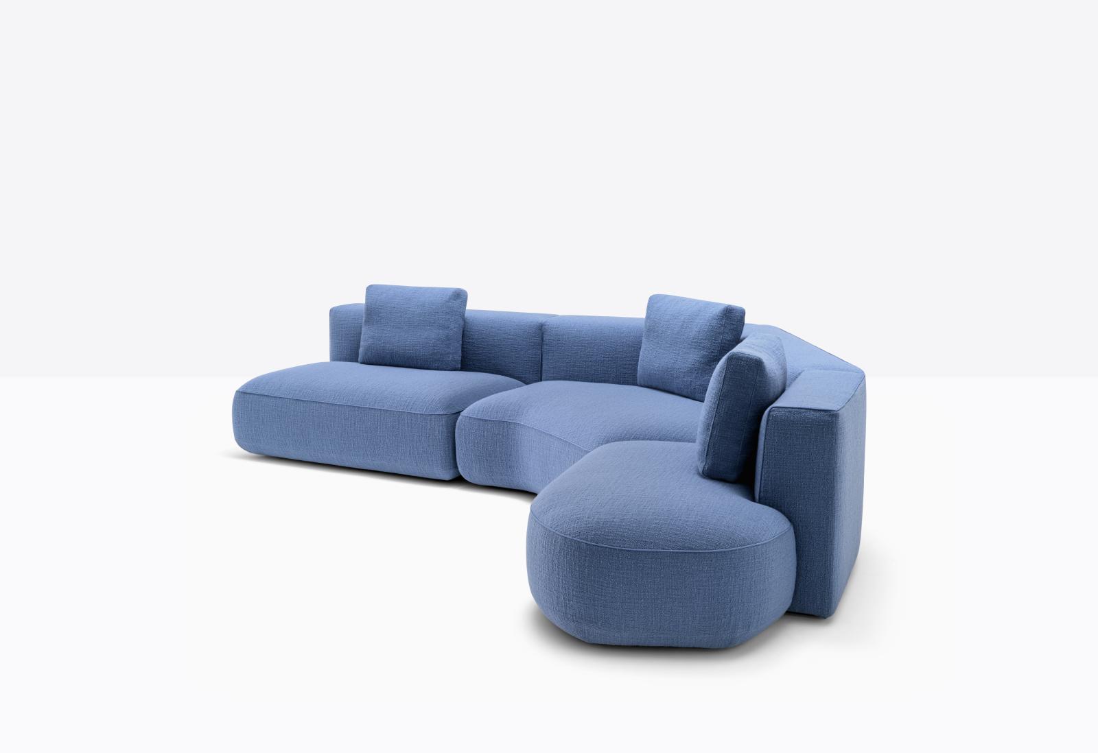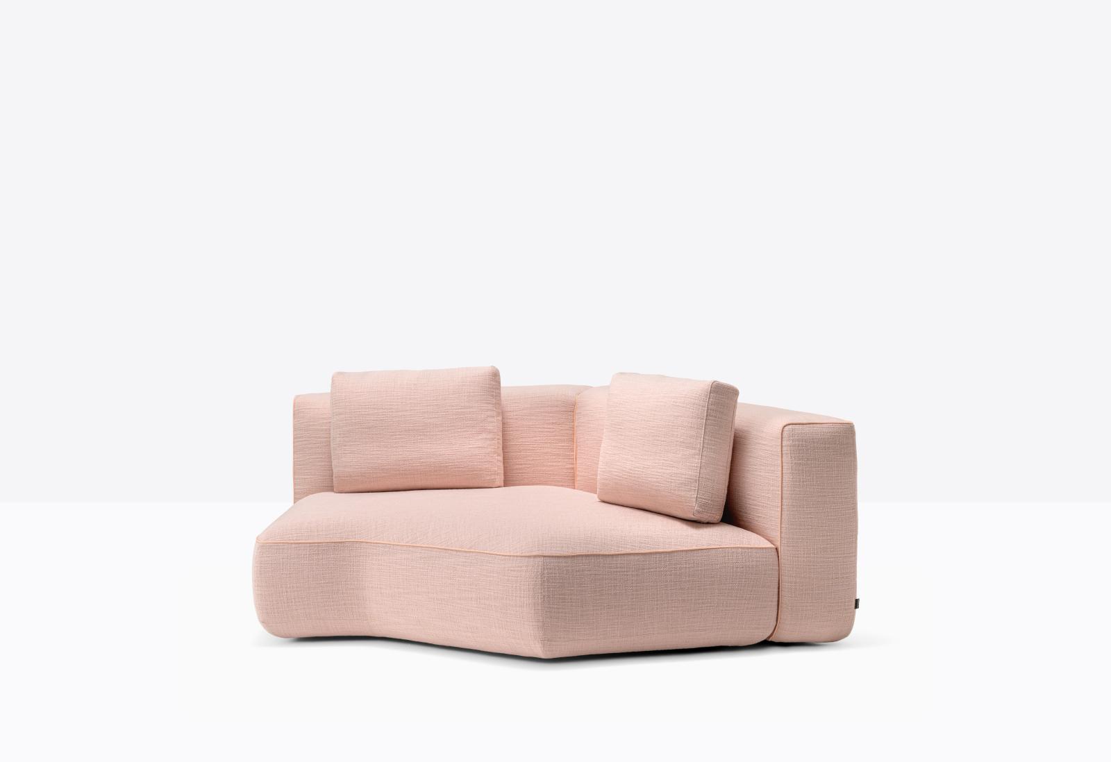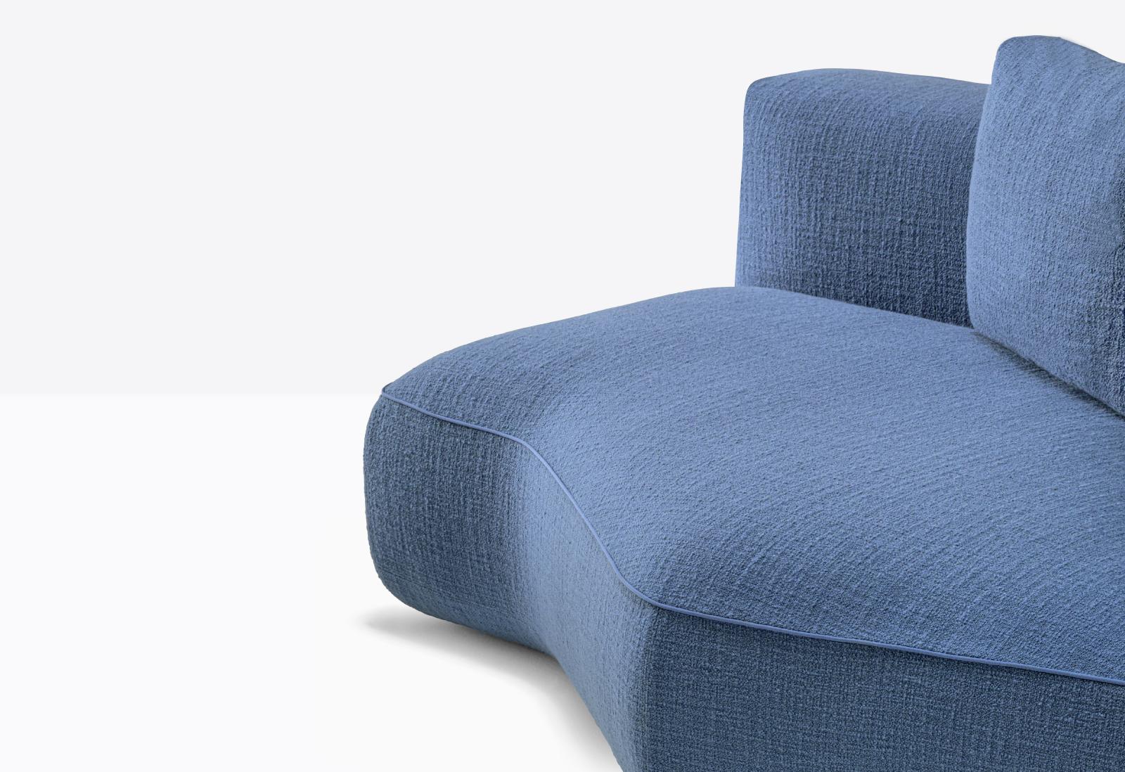 Jeff is a contemporary modular sofa system, designed as a set of miniature architectures, skilfully combined to create multiple modular and reconfigurable scenarios. The distinguishing feature of Jeff is its harmony of volumes: the squared backrest pairs with a delicate seat to soften and give balance to the whole structure. Corner element 120° made from a highly comfortable and non-deformable polyurethane foam, resting on a plywood platform covered in fabric that is raised 3 cm of the ground by small feet. The backrest cushion further contributes to the sofa’s overall comfort, providing effective lumbar support. The lining is removable so that it can be cleaned and maintained with ease. A system of connecting hooks makes it possible to dismantle and reconfigure the sofa, customising it and adapting it according to the evolution of the space.